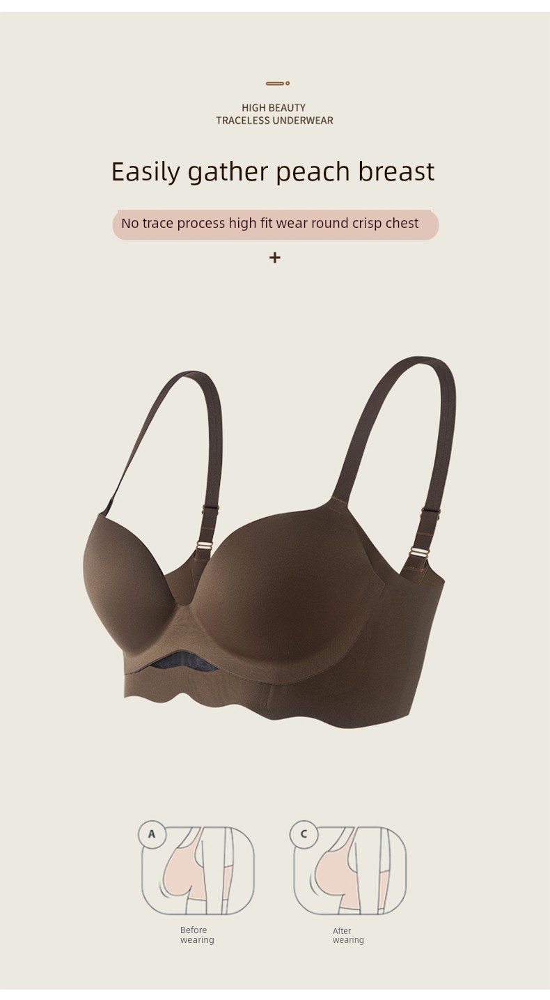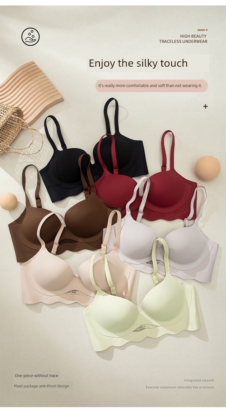 这款无缝文胸专为小胸女性设计,具备卓越的聚拢与提升效果。无钢圈设计让您倍感舒适,透气面料保证全日干爽。无缝剪裁完美贴合身体曲线,轻松营造性感外形,满足日常穿搭的多种需求。