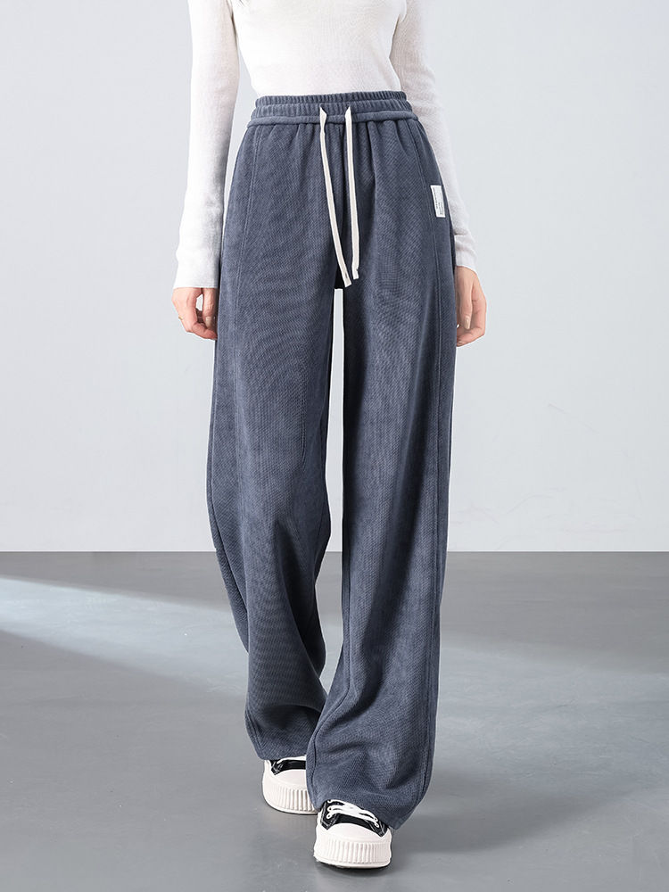 2025 Spring New Style Casual Pants for Women, Loose, High-Waisted, Slimming, Wide-Leg Pants, Drape, Grey-Blue, Long Pants for Women, High-End Feel