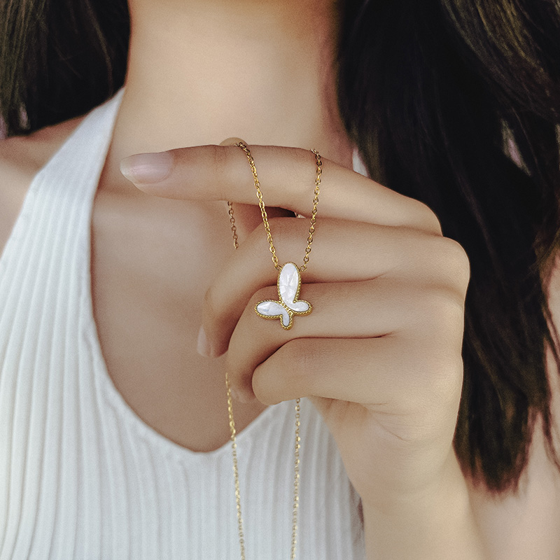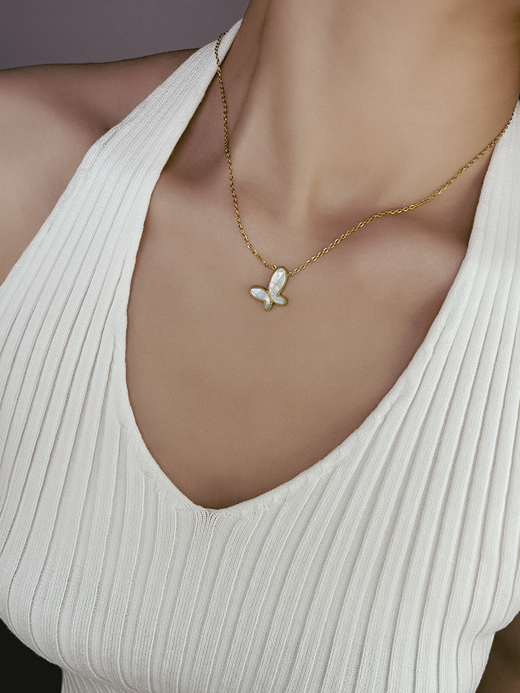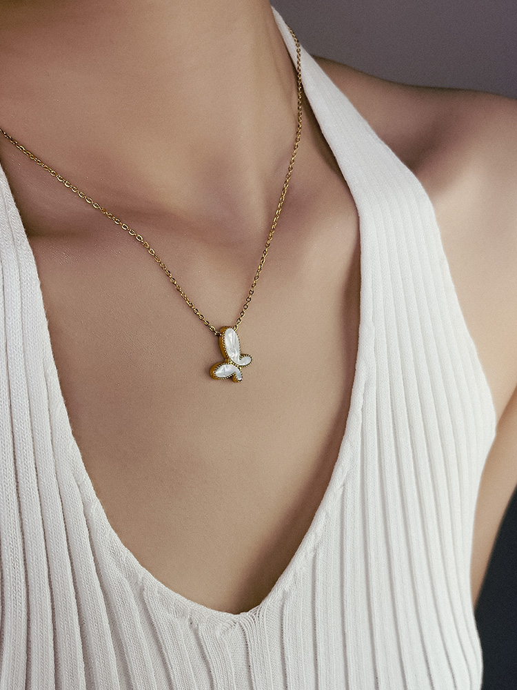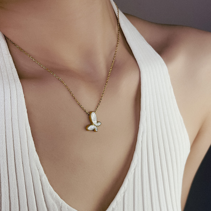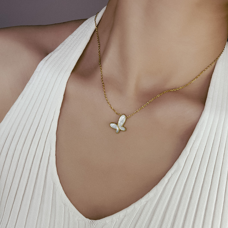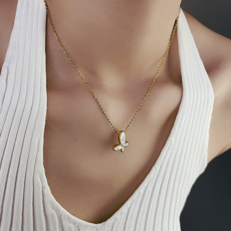 Accessible Luxury Stylish Butterfly 2023 New Arrival Necklace Tide Stylish Temperament Clavicle Chain Shell Patch Pendant Titanium Steel
