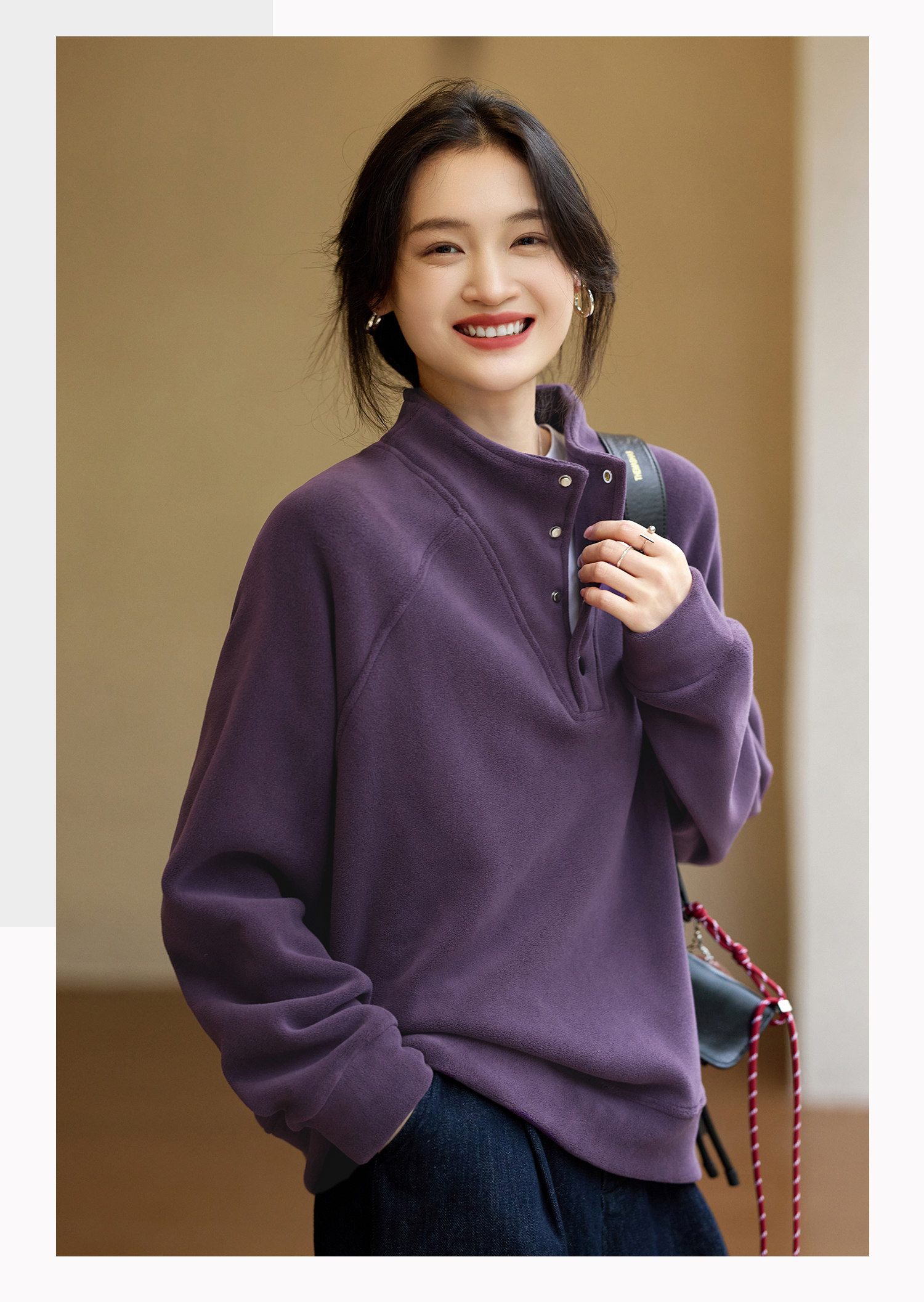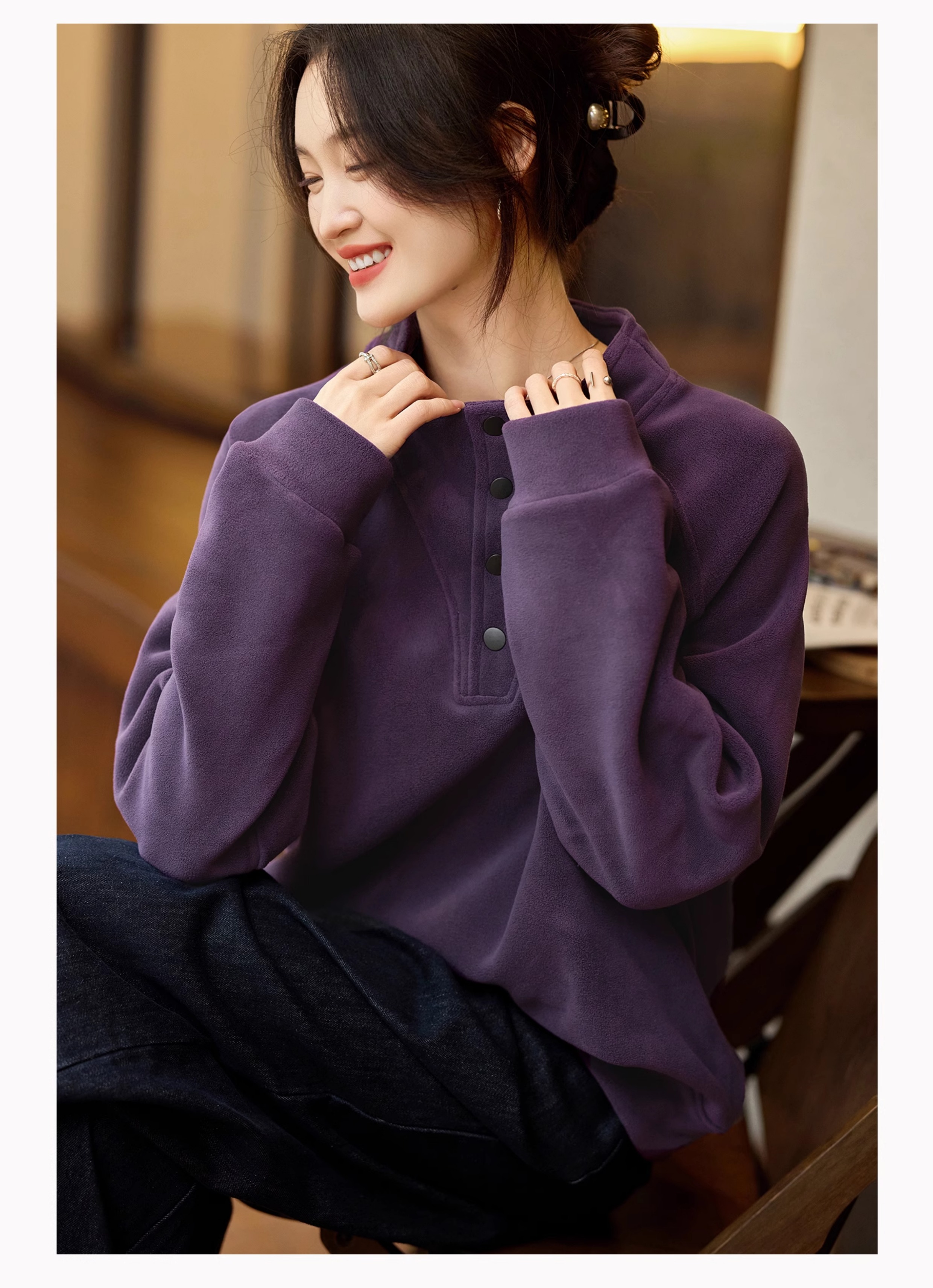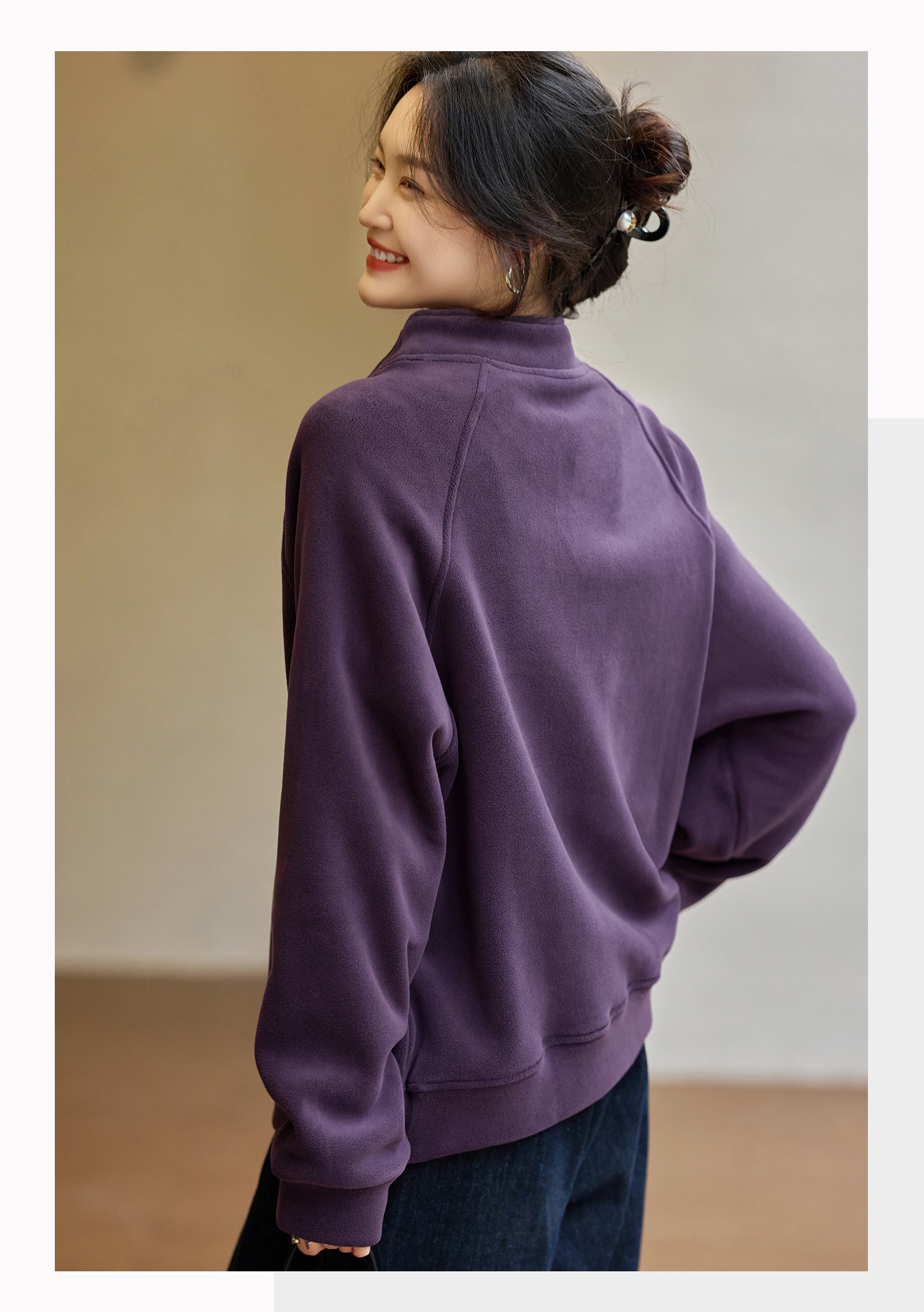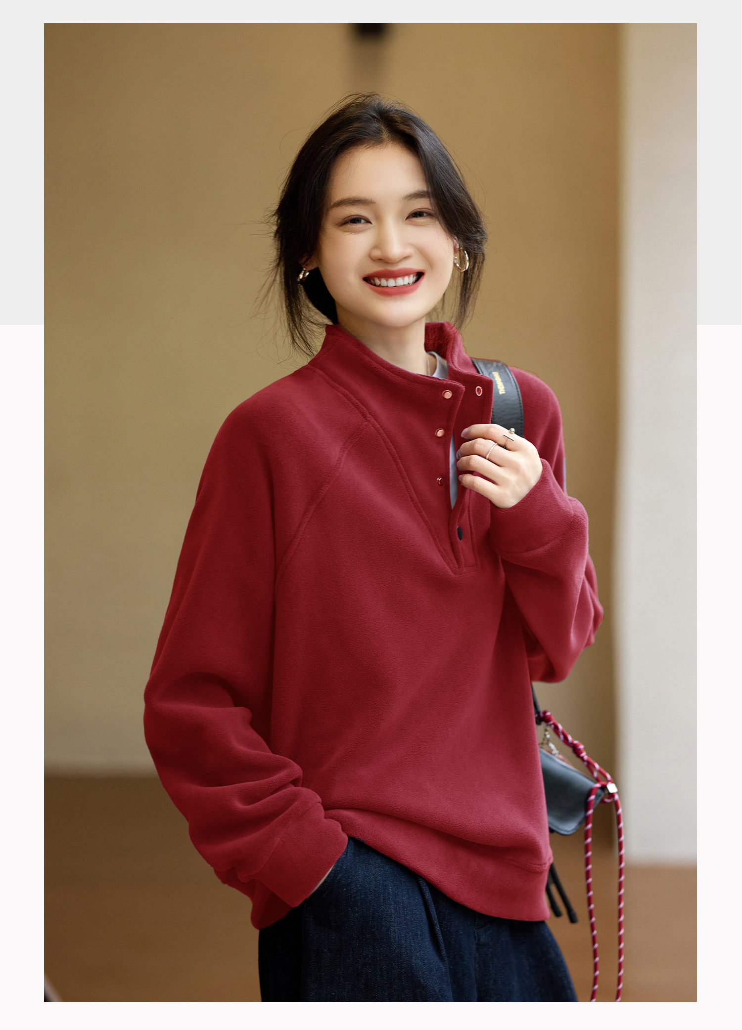 Basic House/Baijiahao New Year Red Stand-up Collar Dralon Sweatshirt Women's Spring Thickened Half-Open Collar Bottoming Shirt