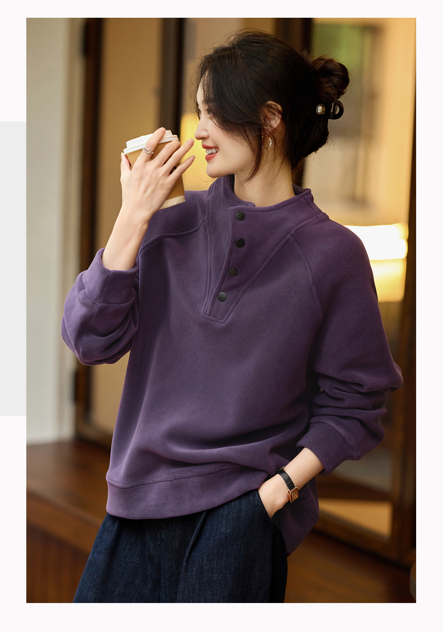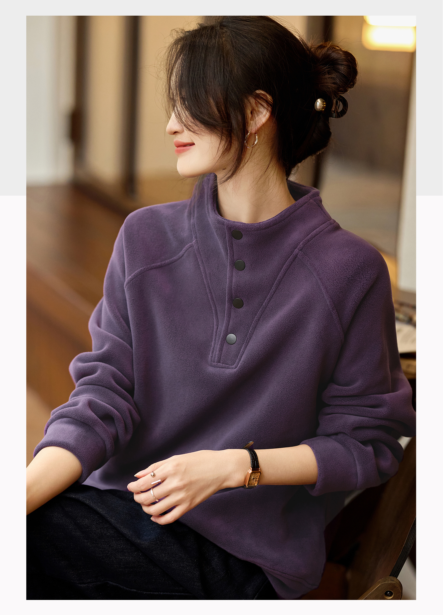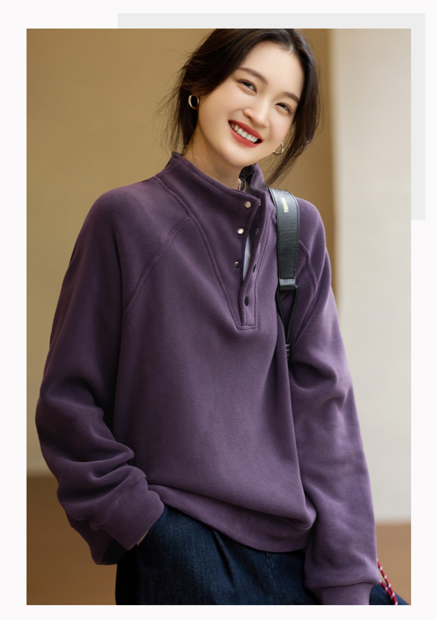 Basic House/Baijiahao New Year Red Stand-up Collar Dralon Sweatshirt Women's Spring Thickened Half-Open Collar Bottoming Shirt