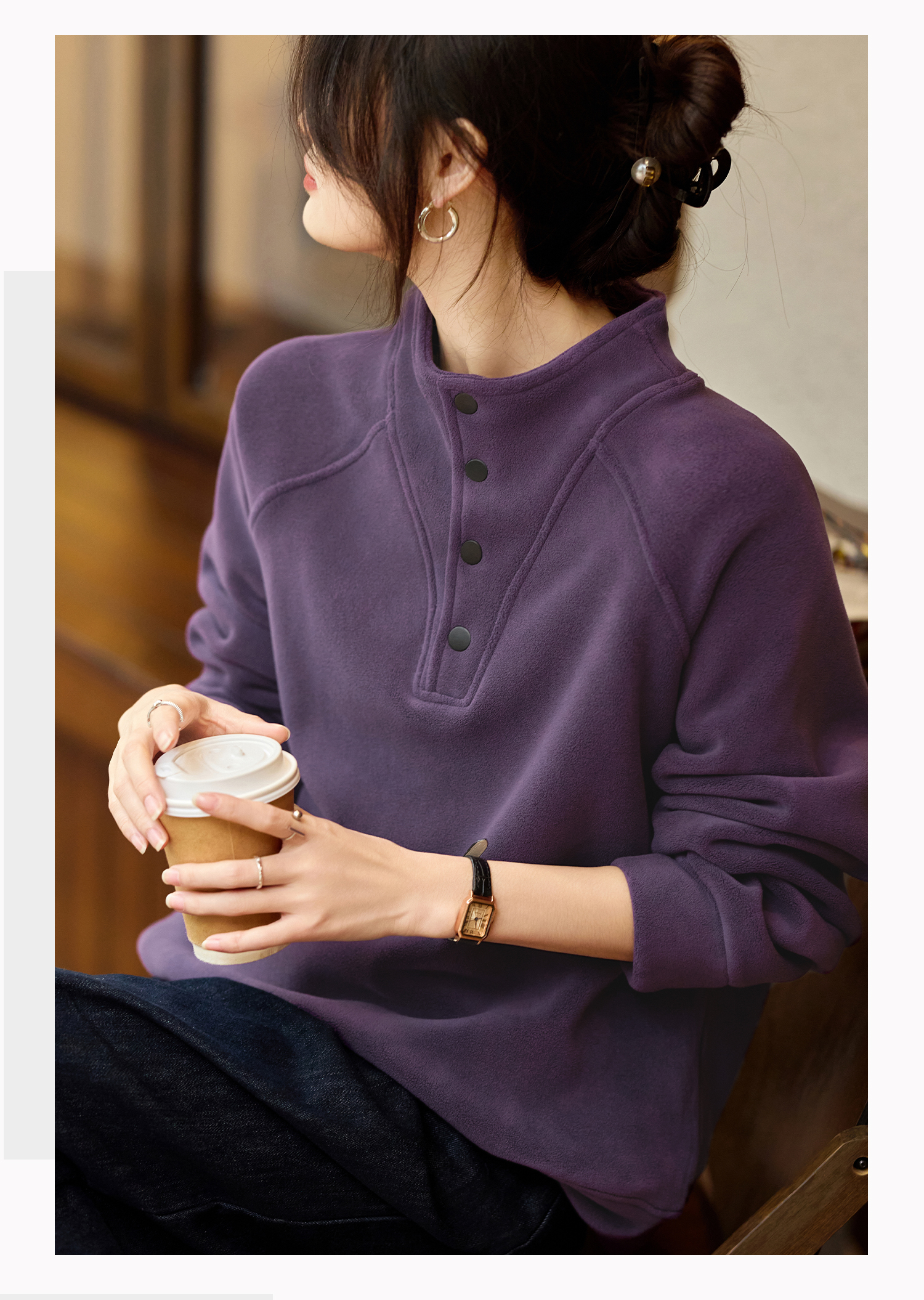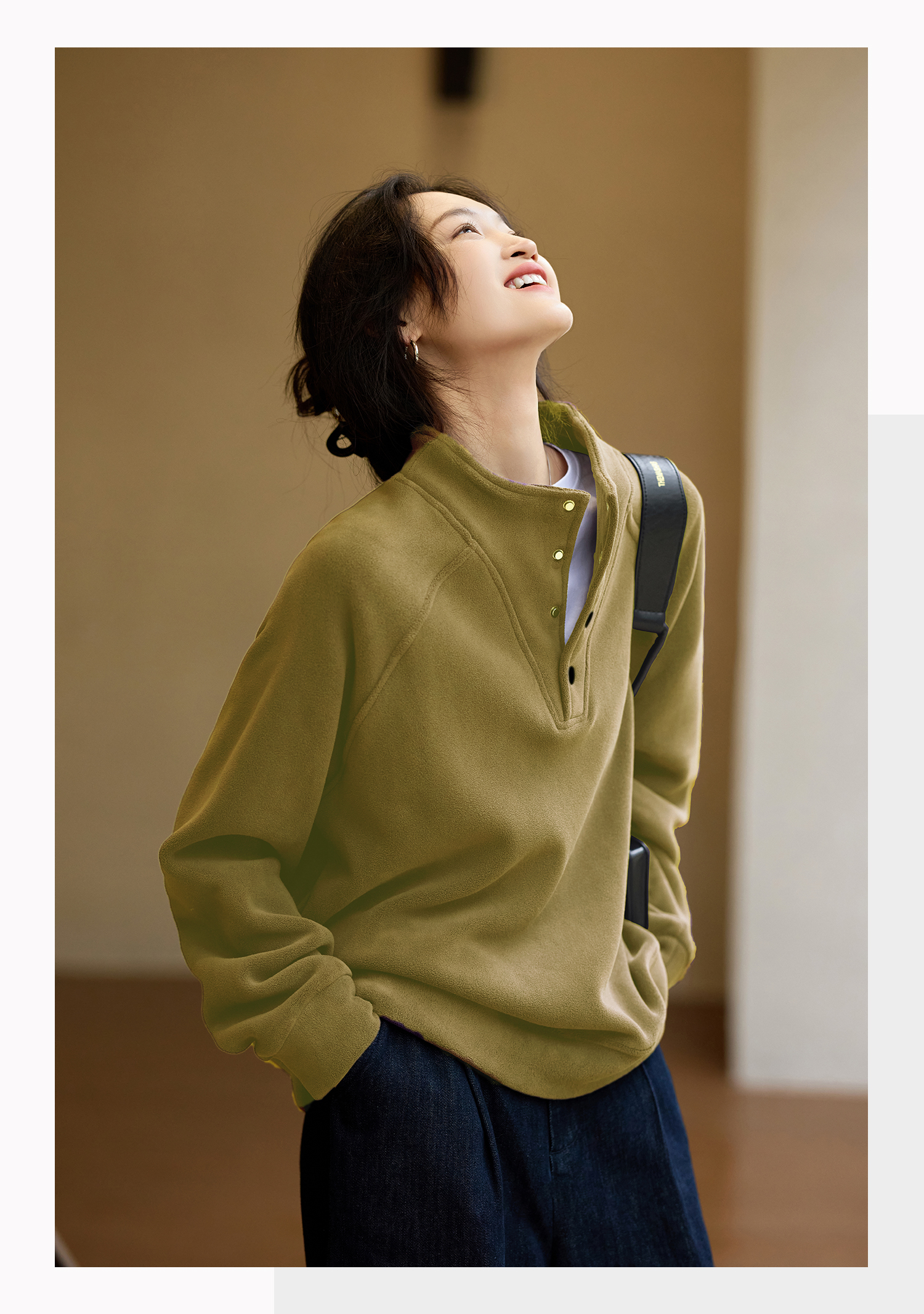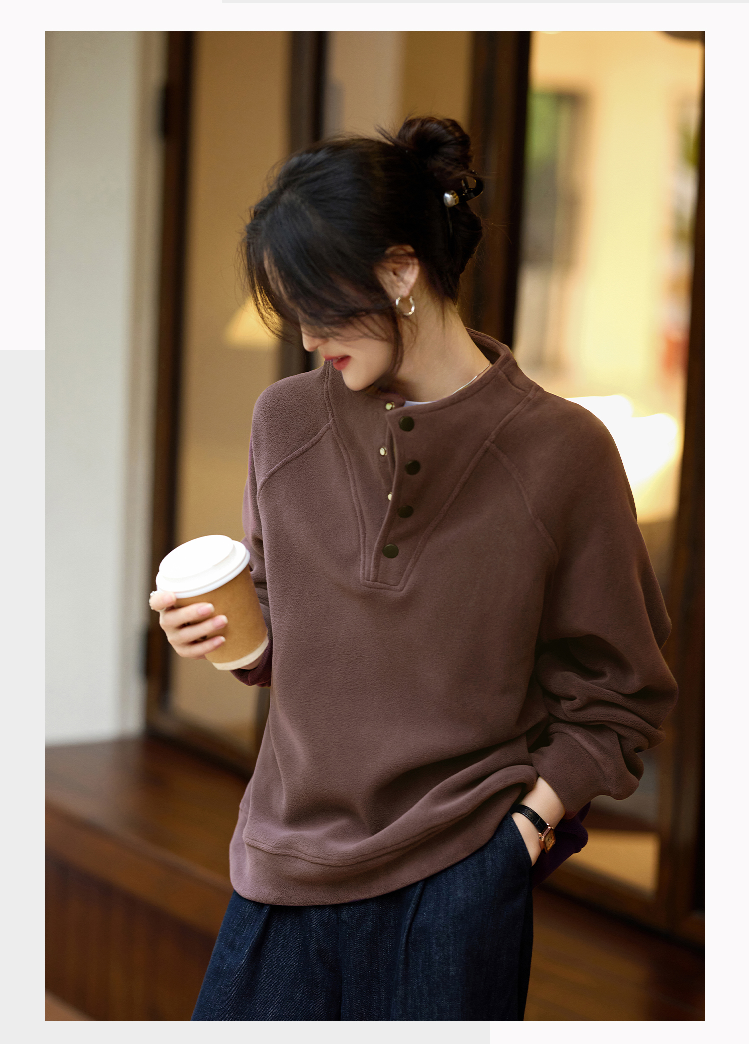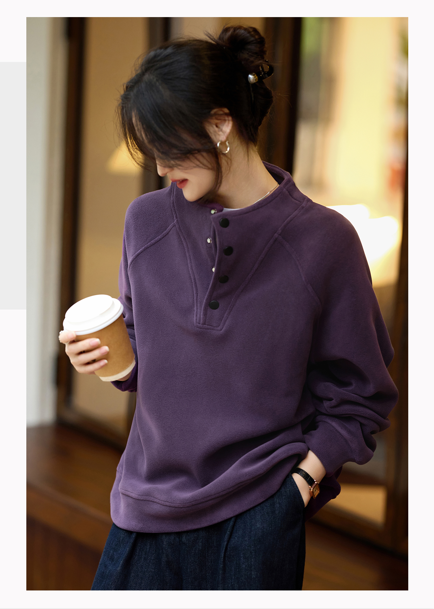 Basic House/Baijiahao New Year Red Stand-up Collar Dralon Sweatshirt Women's Spring Thickened Half-Open Collar Bottoming Shirt