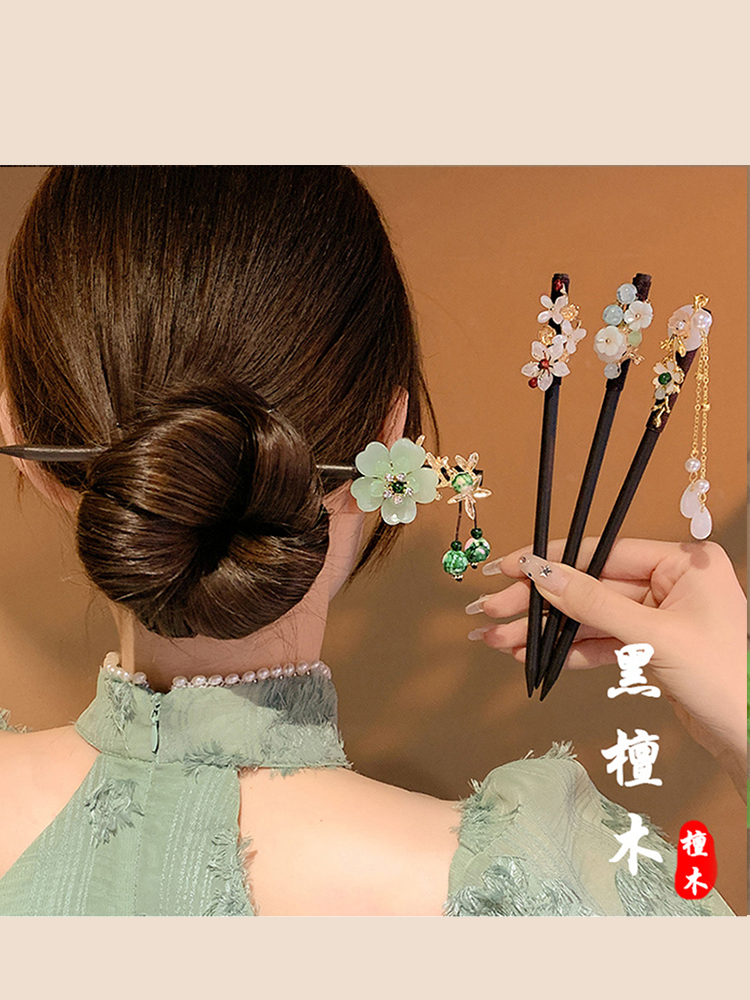 Fancy Chinese Ancient Style Tassel Hairpin Women's New Chinese Style Ebony Quality Updo Pin Han Dynasty Hairpin Hair Piece Hair Clasp Headdress