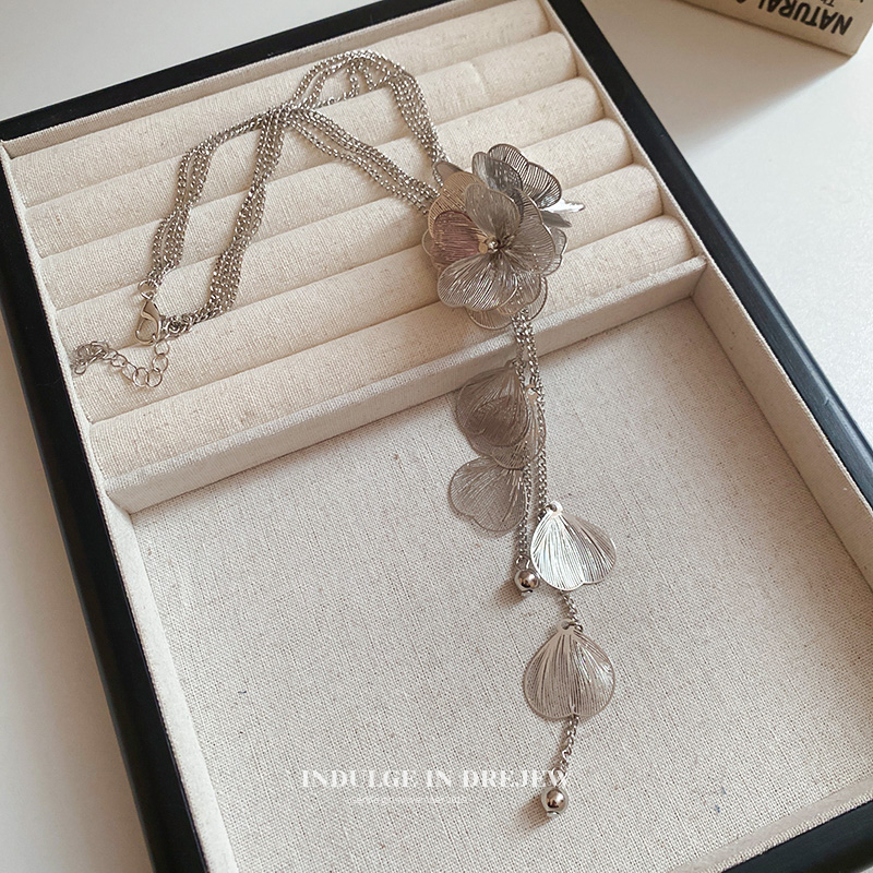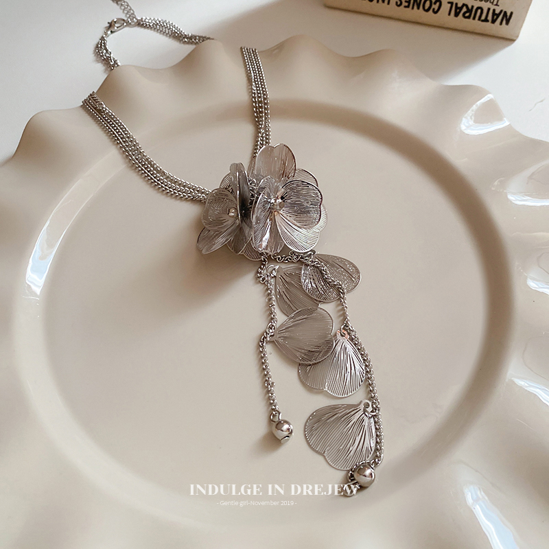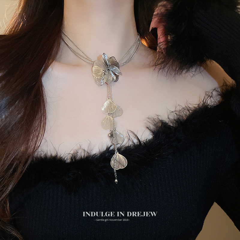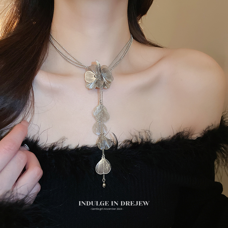 Fashion Retro Metallic Petal Fringe Multi-Layer Necklace Fancy Light Luxury Minority Clavicle Chain Sweater Chain Accessories