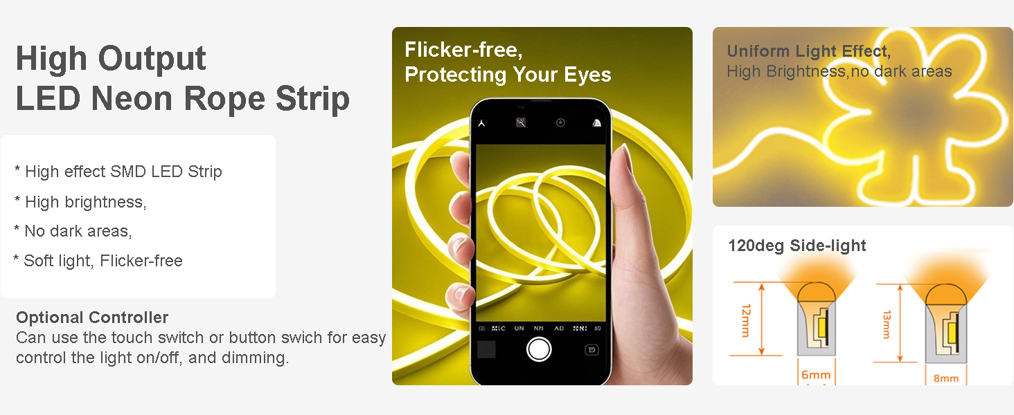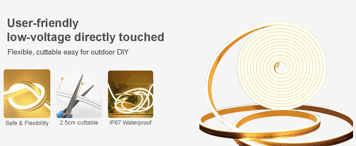 - 【IP65 Waterproof LED Neon Strip Lights】: The neon LED strip lights are waterproof and suitable for use in swimming pools or heavy rain, with durable and weather-resistant silicone construction.