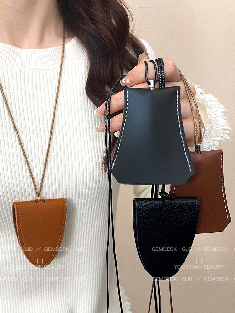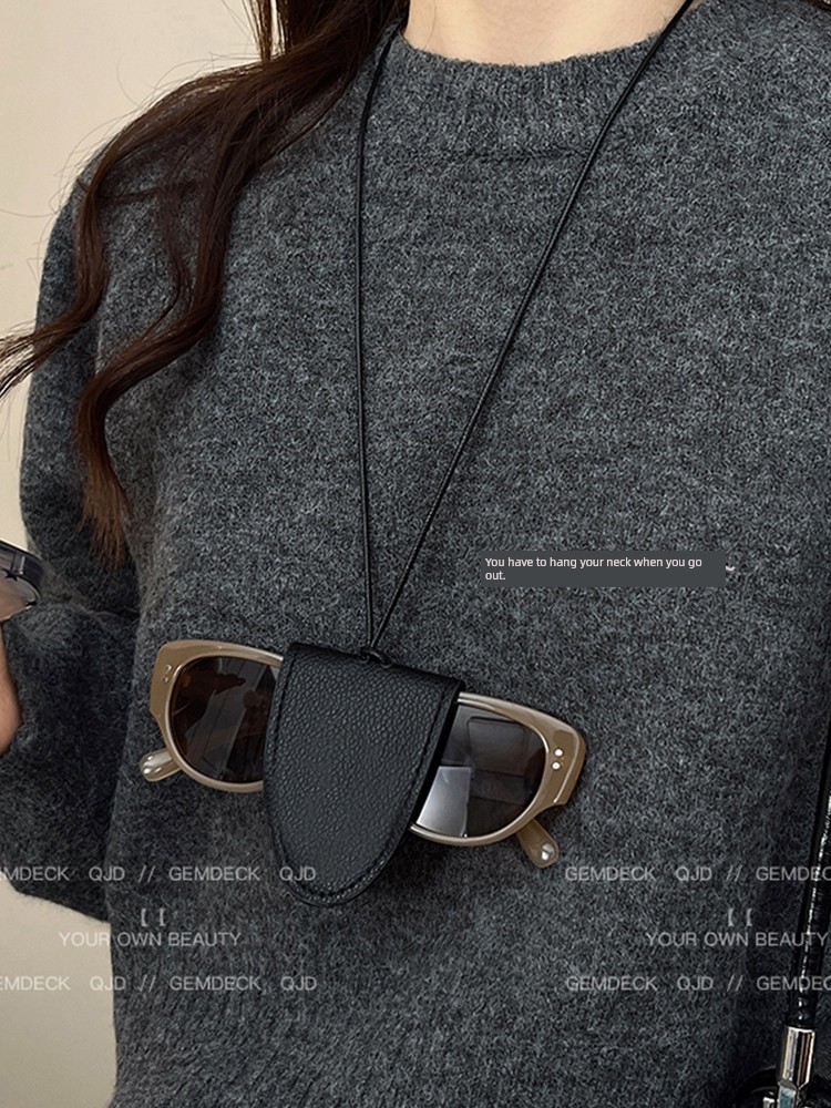 Leather Multi-Functional Magnetic Halterneck Glasses Clip Necklace Women's Portable Fancy Sunglasses Clip Earphone Bag Accessories