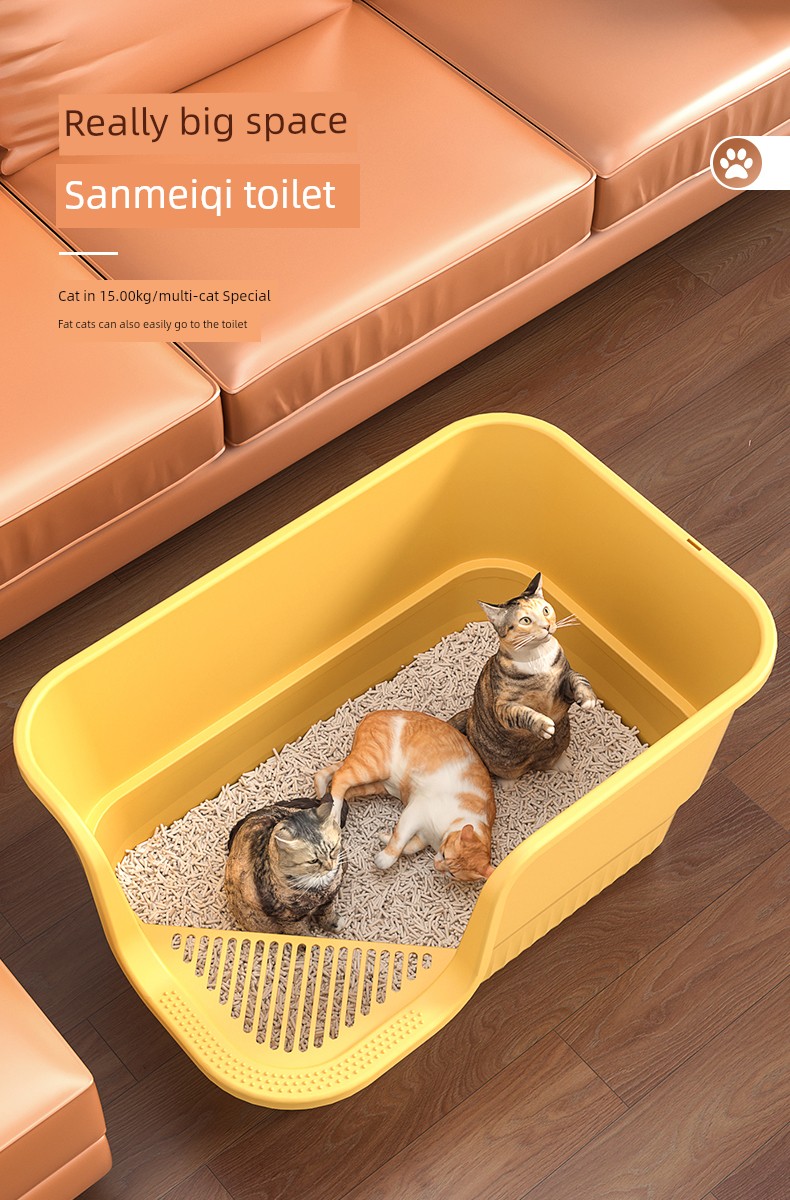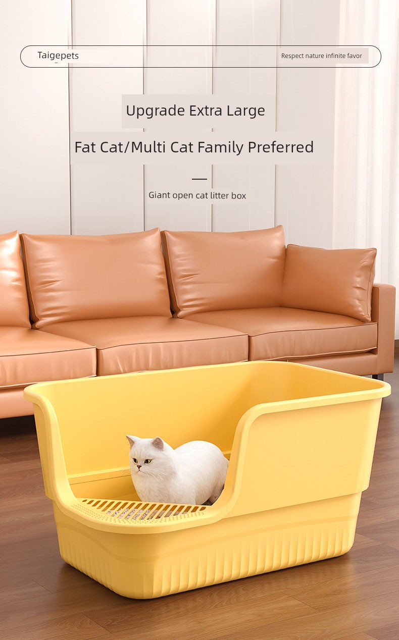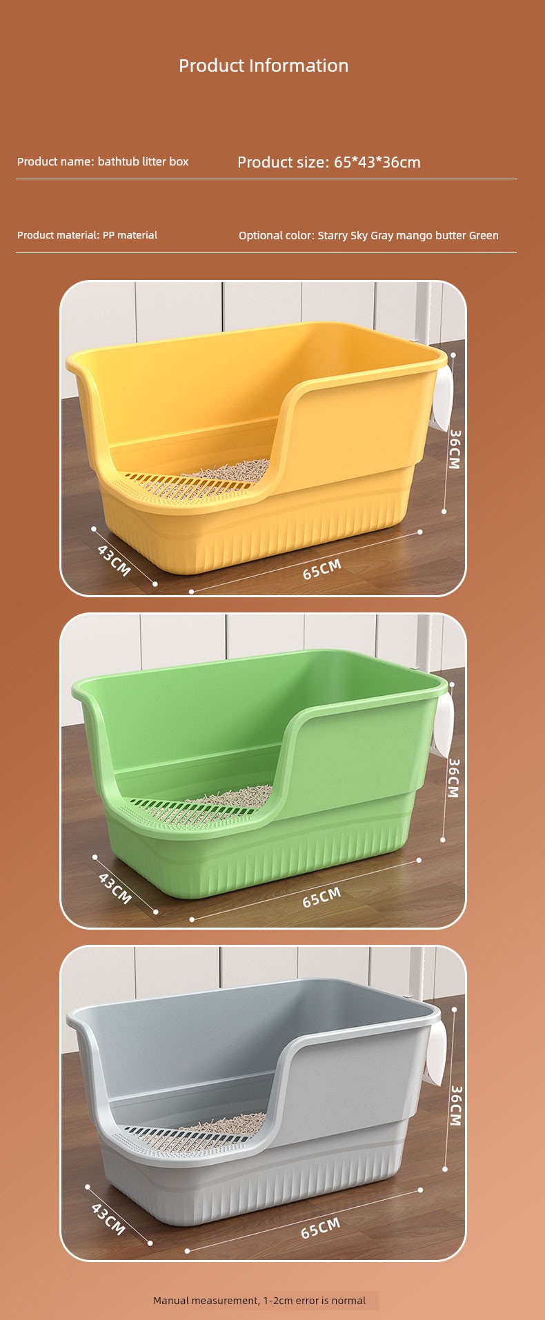 Litter Box Oversized Splash-Proof Open Cat Toilet Maine Extra Large Semi-Enclosed Giant Cat Litter Cat Litter Box