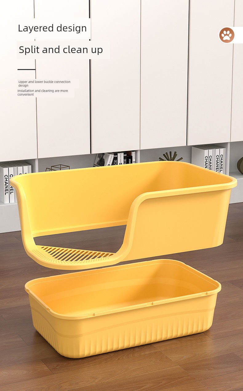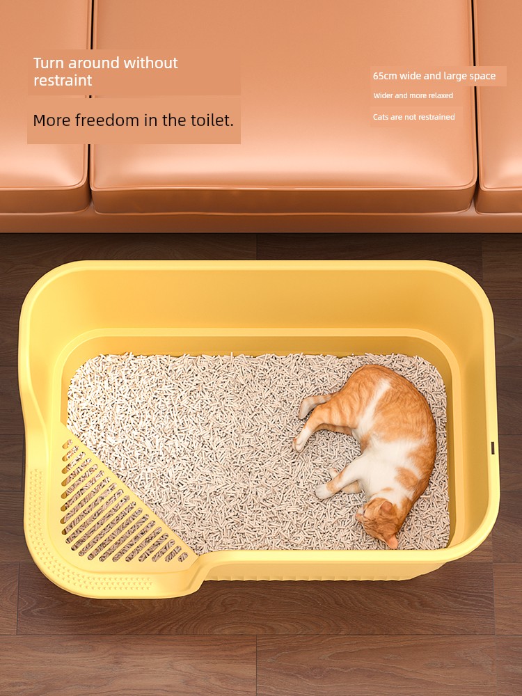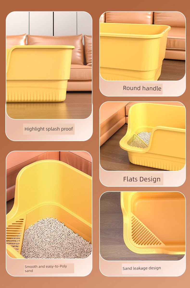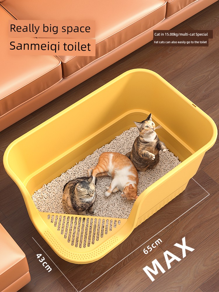 Litter Box Oversized Splash-Proof Open Cat Toilet Maine Extra Large Semi-Enclosed Giant Cat Litter Cat Litter Box