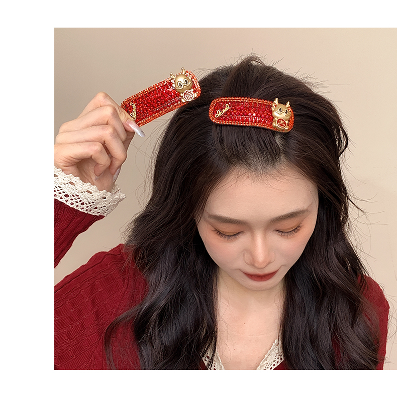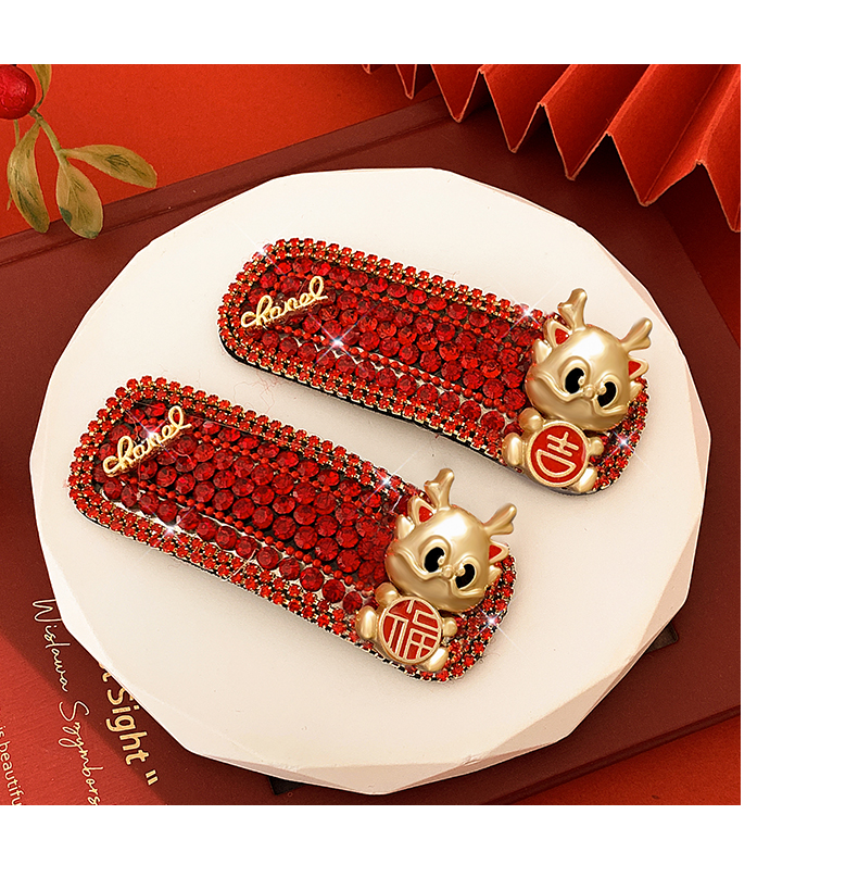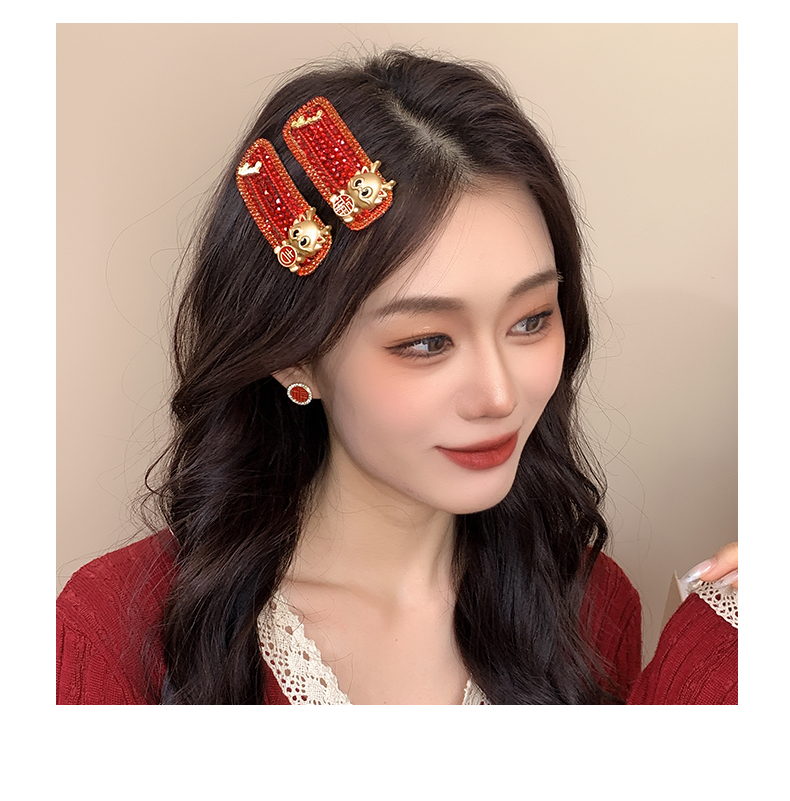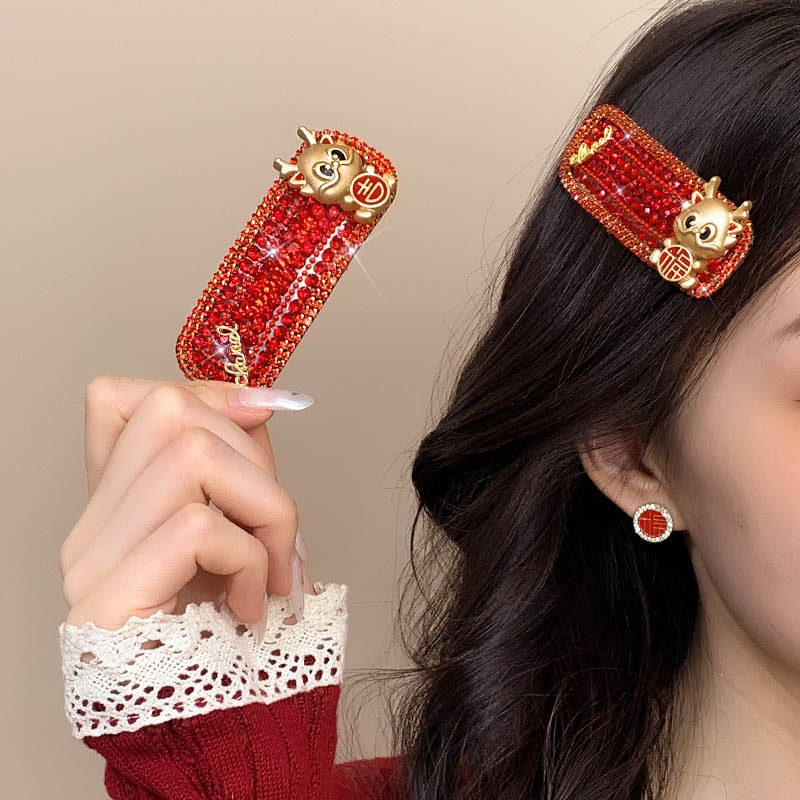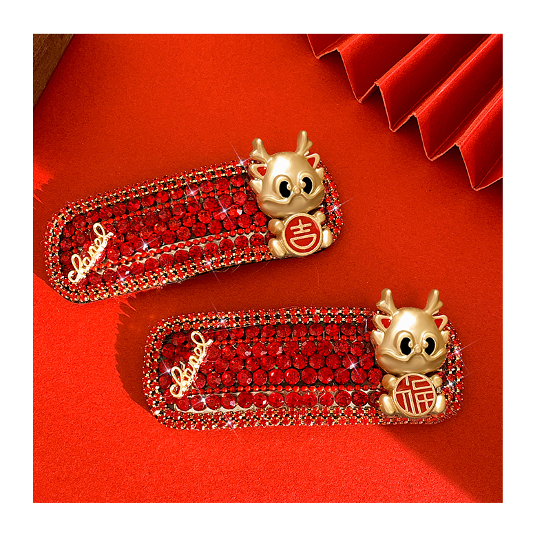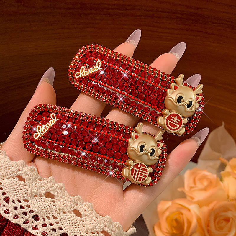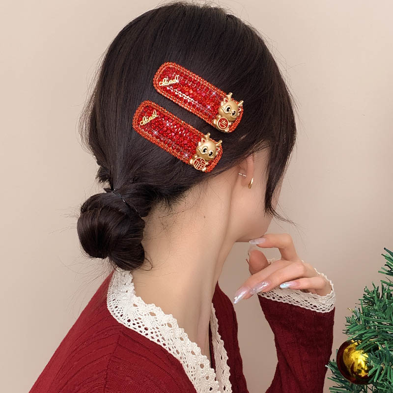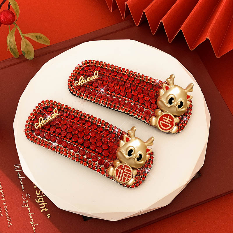 New Year Red Hairpin Female 2024 Dragon Year Birth Year Back Head Side Cropped Hair Clip National Style New Year Fall and Winter Headdress