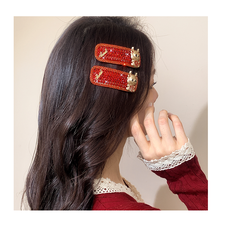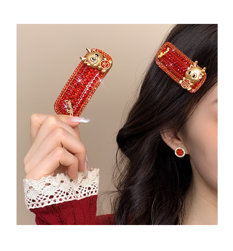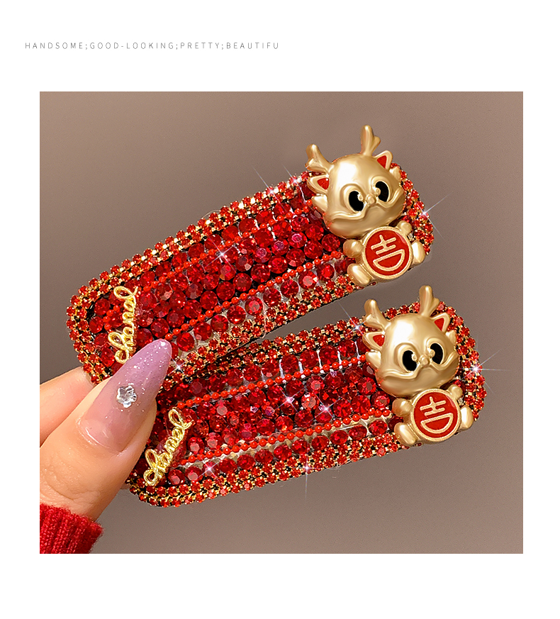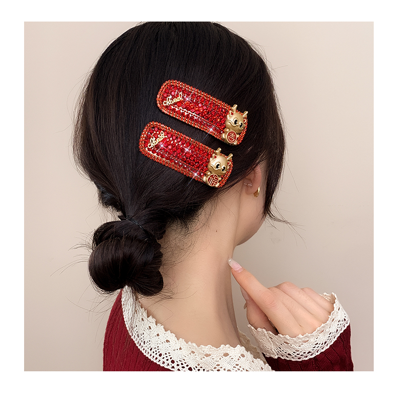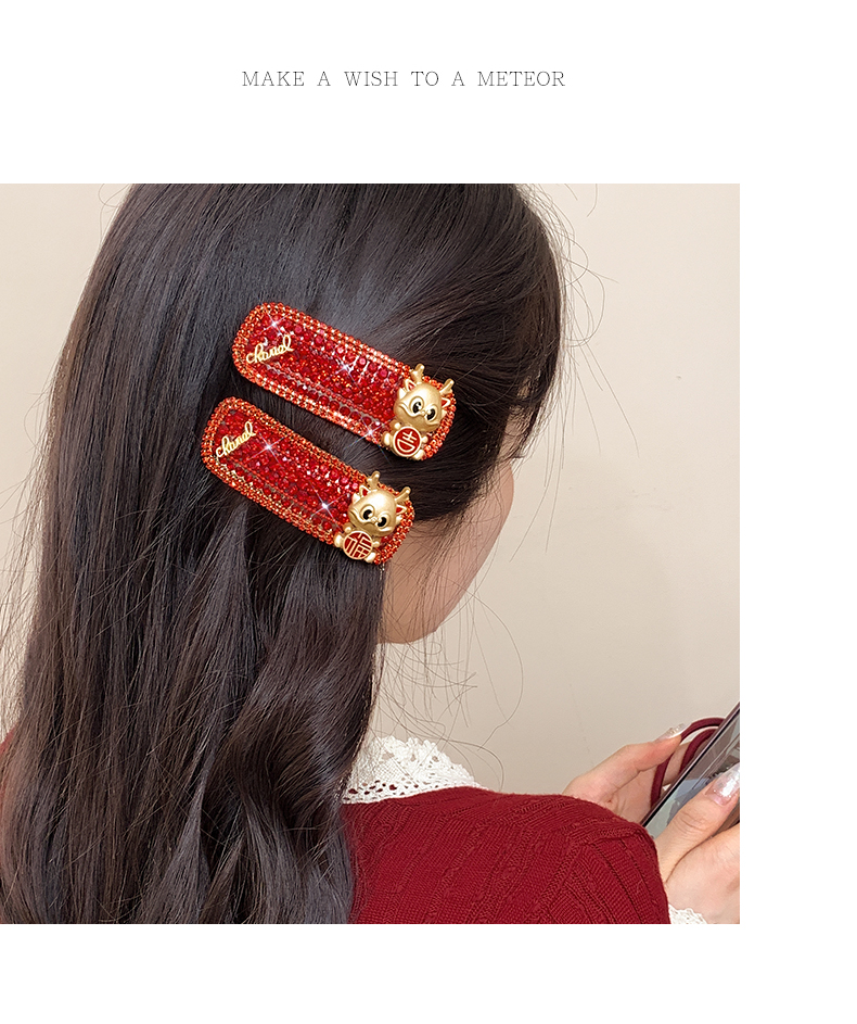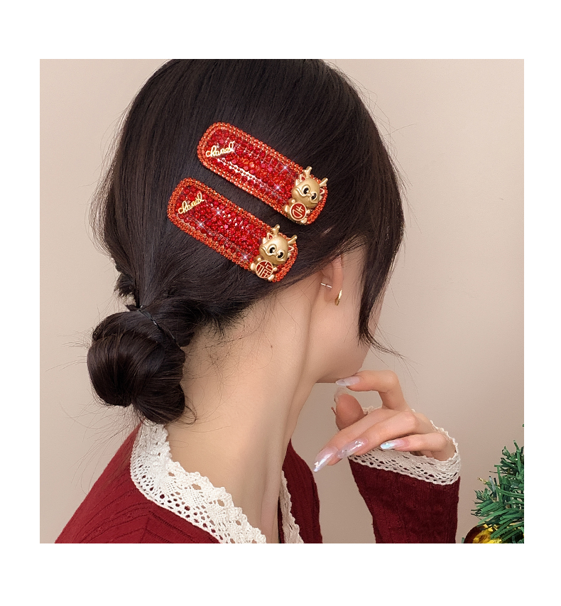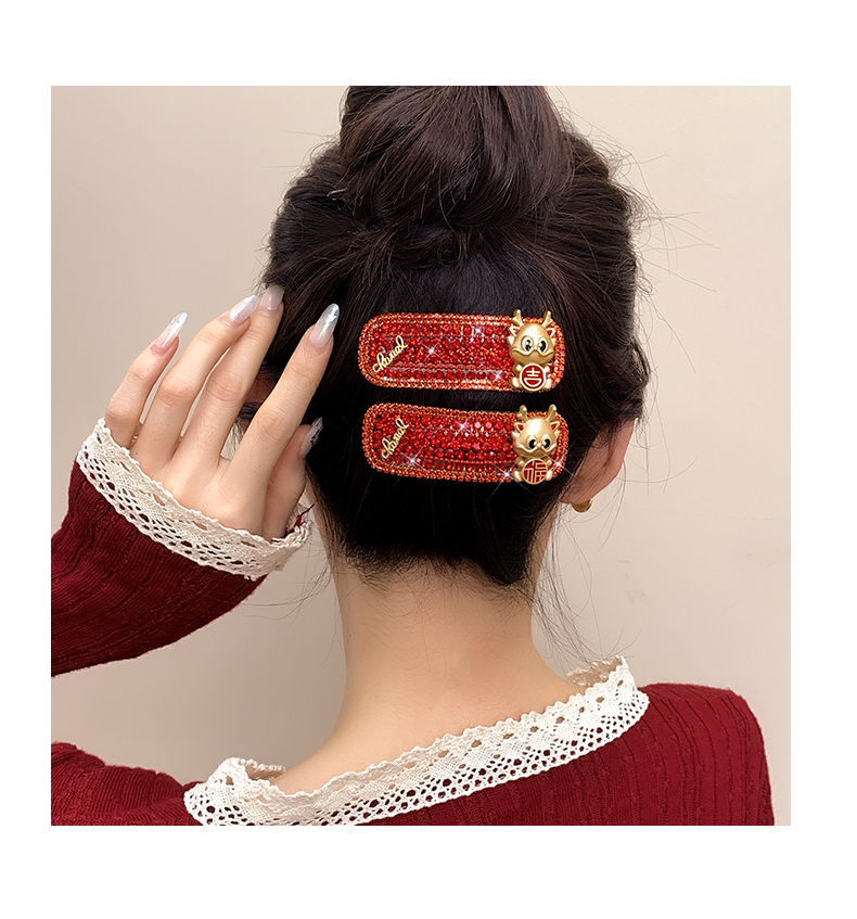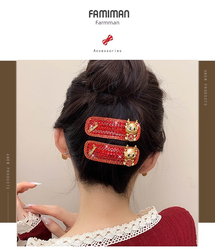 New Year Red Hairpin Female 2024 Dragon Year Birth Year Back Head Side Cropped Hair Clip National Style New Year Fall and Winter Headdress