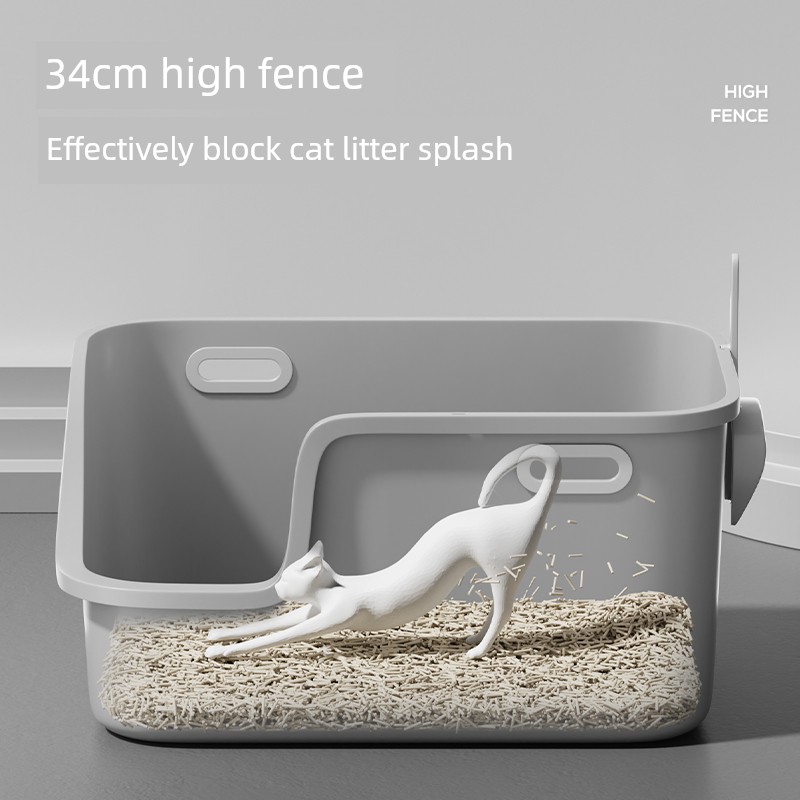 Oversized Litter Box Splash-Proof Cat Toilet Semi-Closed Fully Open Cat Poop Basin Huge Extra Large Cat Litter Basin