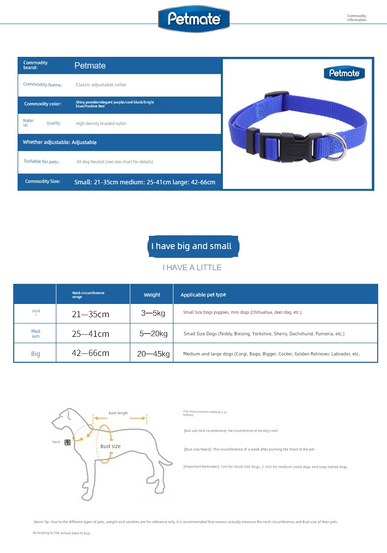 Petmate Pet Dog Collar Collar Explosion-Proof Small, Medium and Large Dogs Collar Puppy Supplies Teddy Corgi