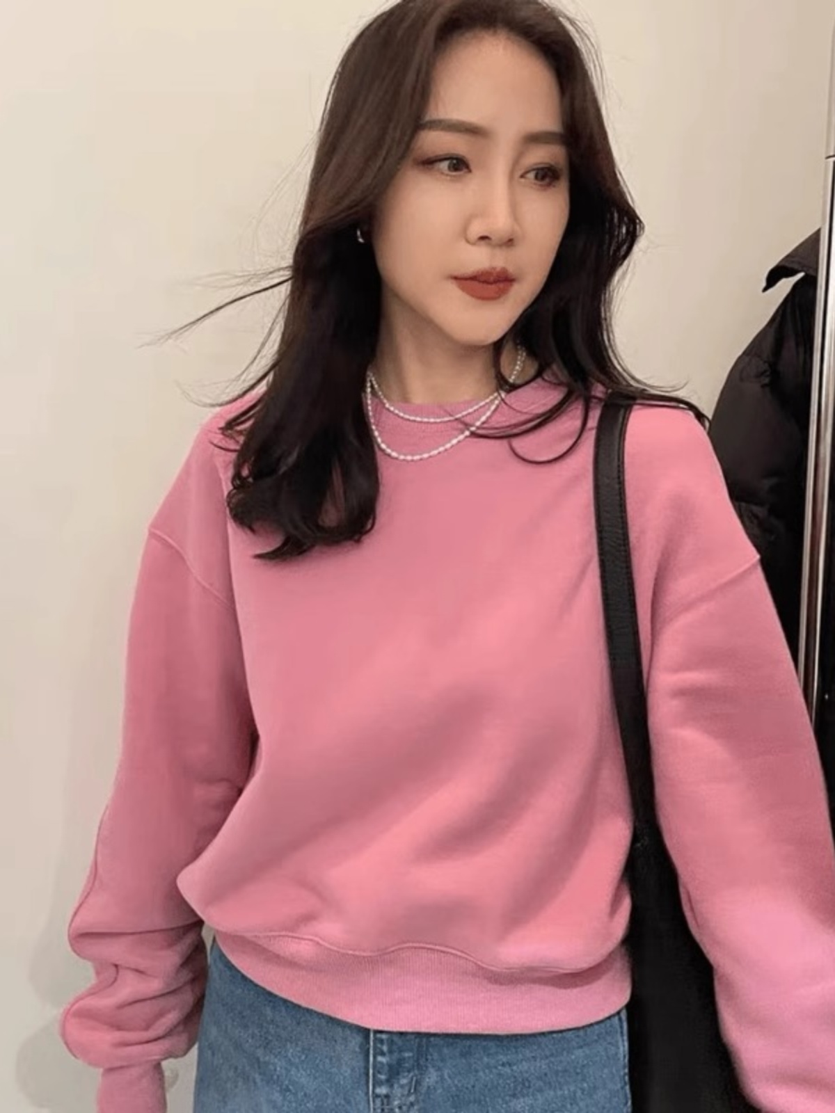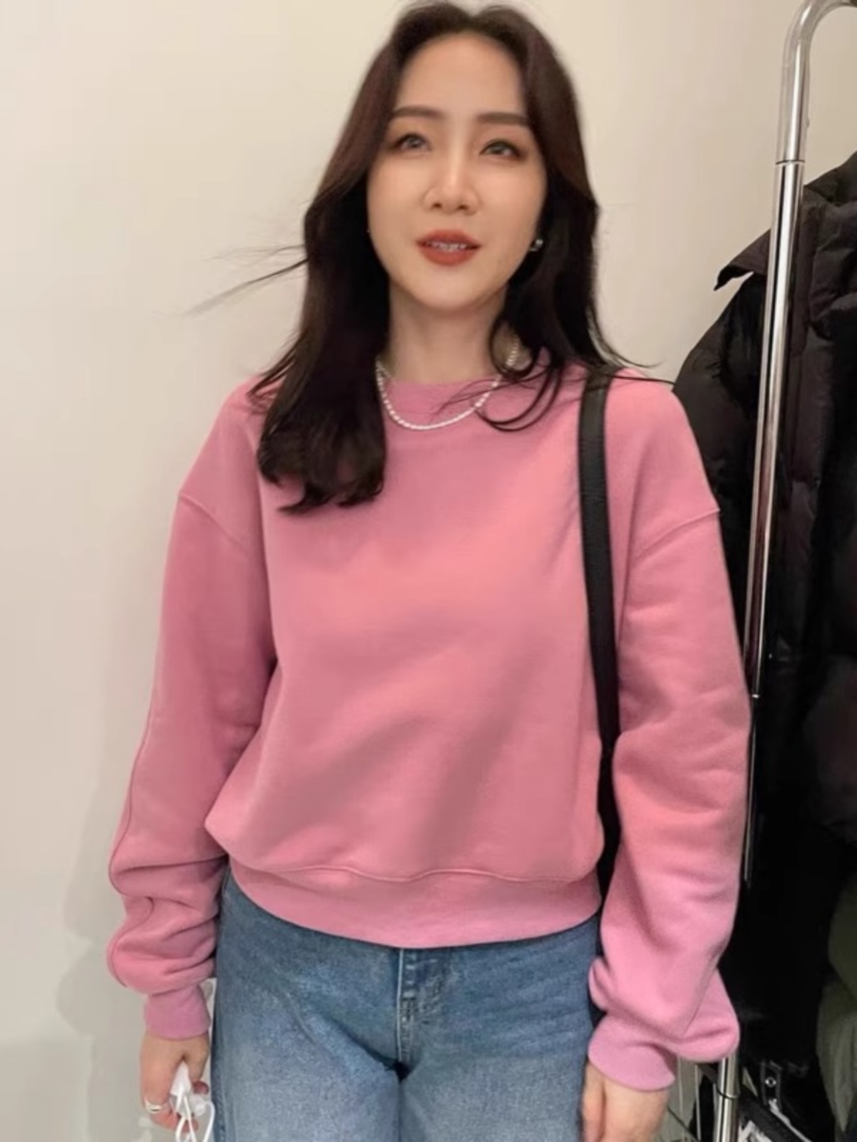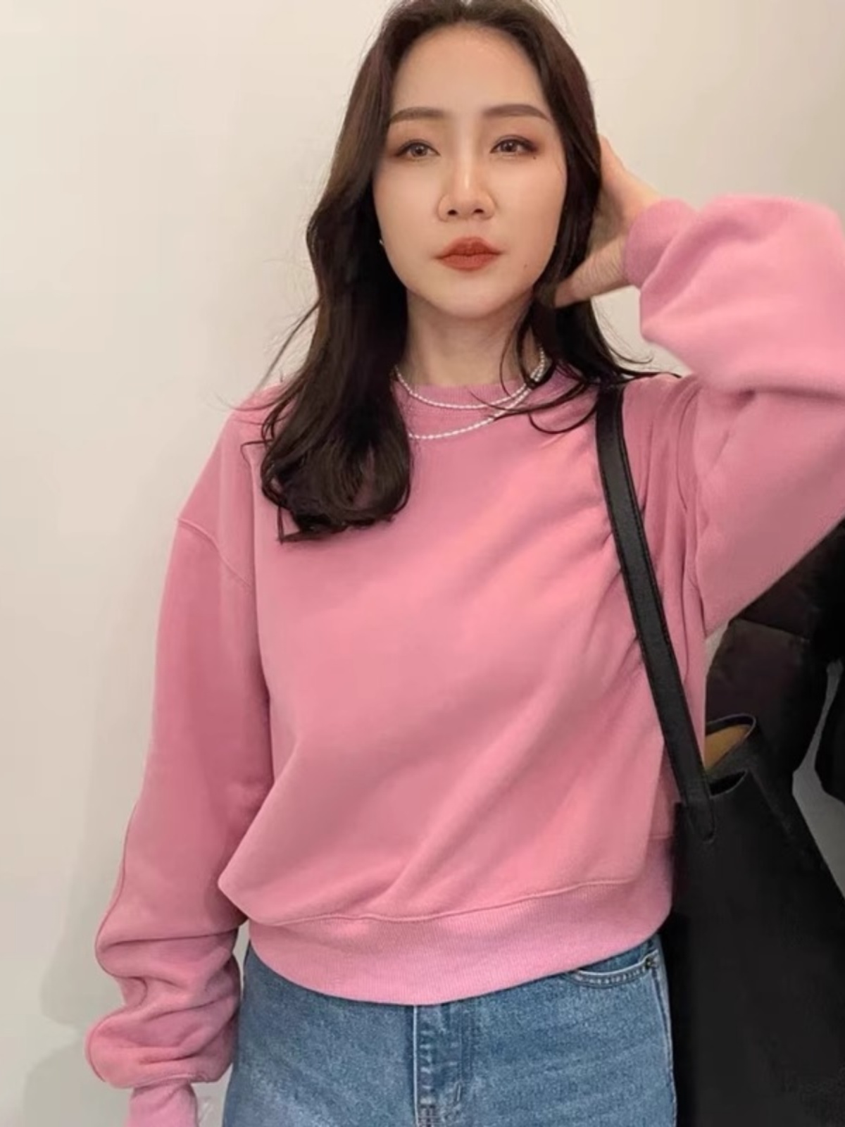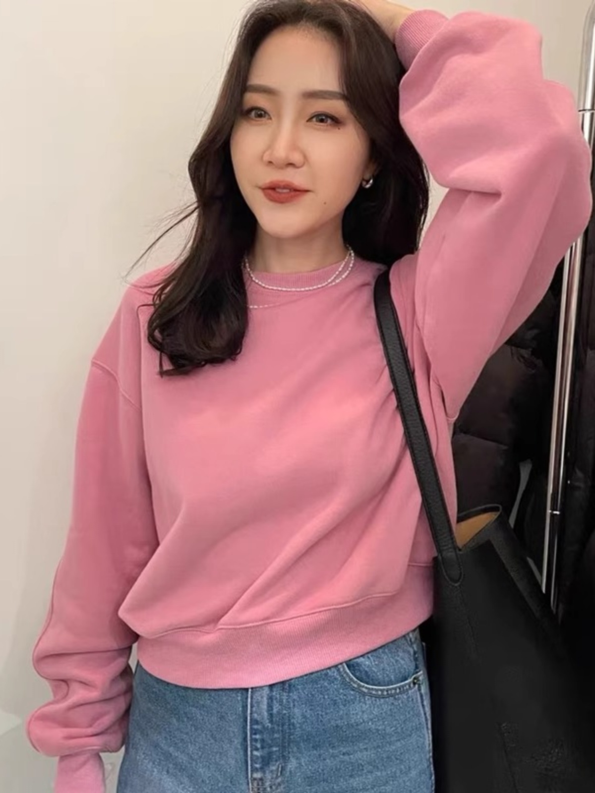 Pink Short Round Neck Sweatshirt Women's Spring and Autumn 2025 New Arrival Best Selling Fashionable Stylish Autumn Loose Top without Hood