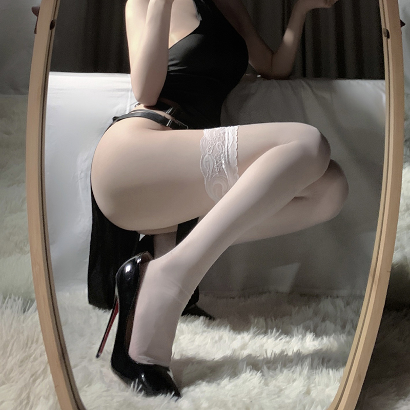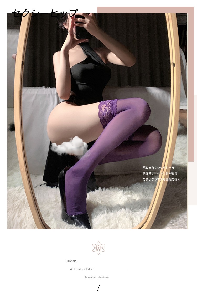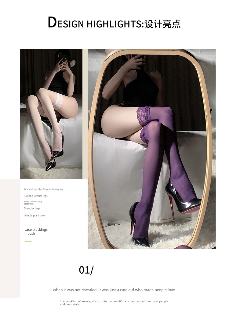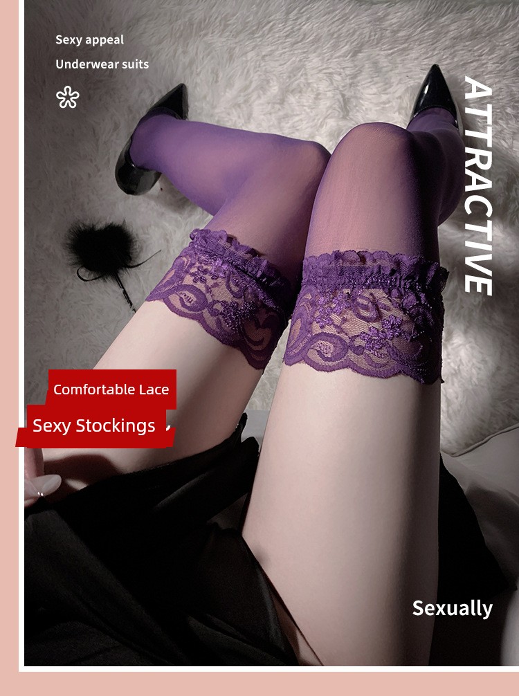 Purple Lace Long Tube Stockings Lace Non-Slip Fishnet Stockings Sexy Black Silk Knee High Half over the Knee Hold-Ups White Silk