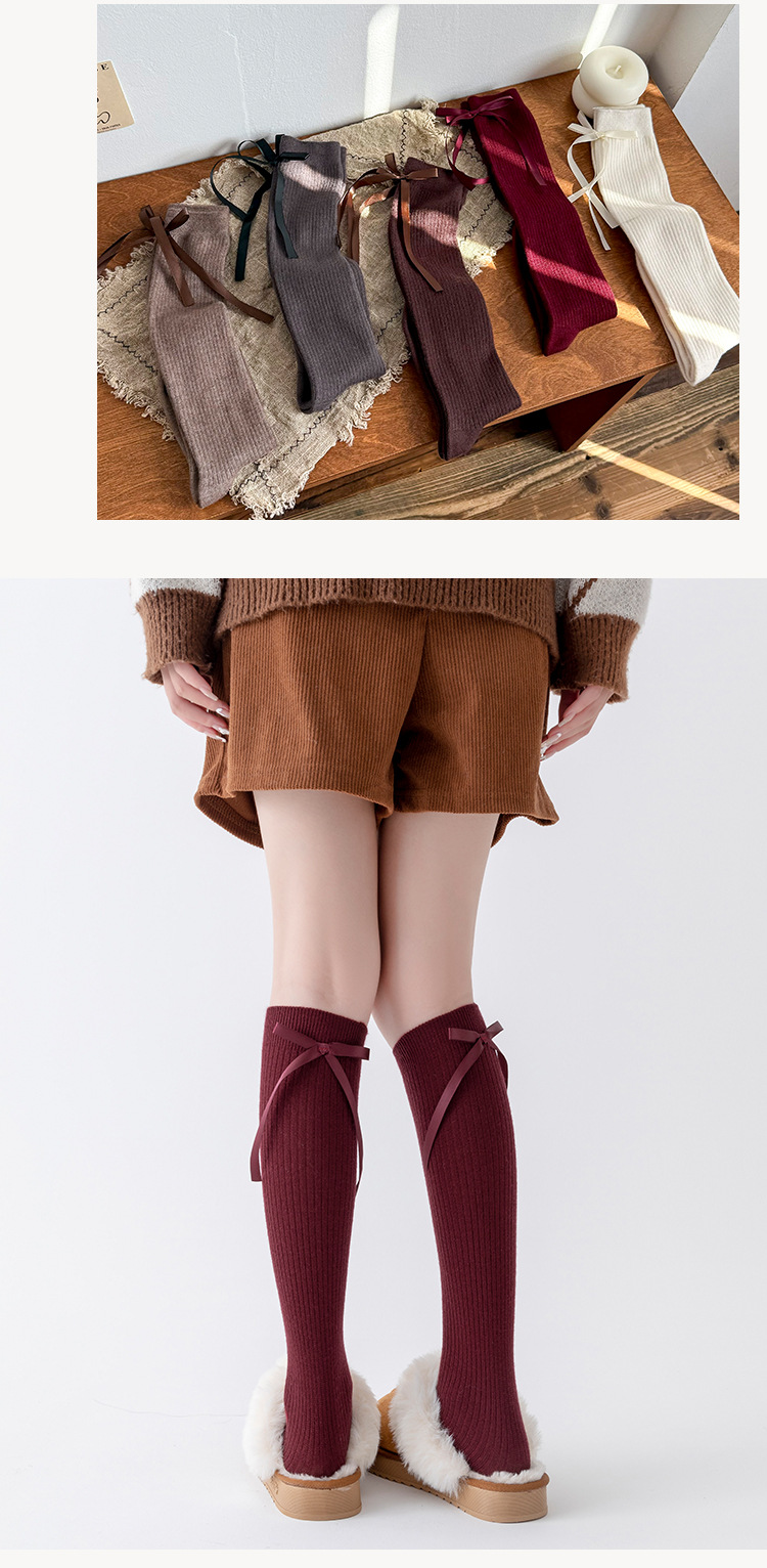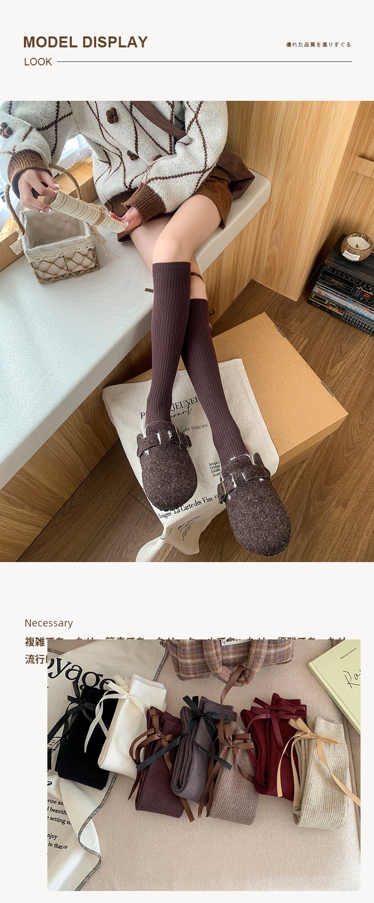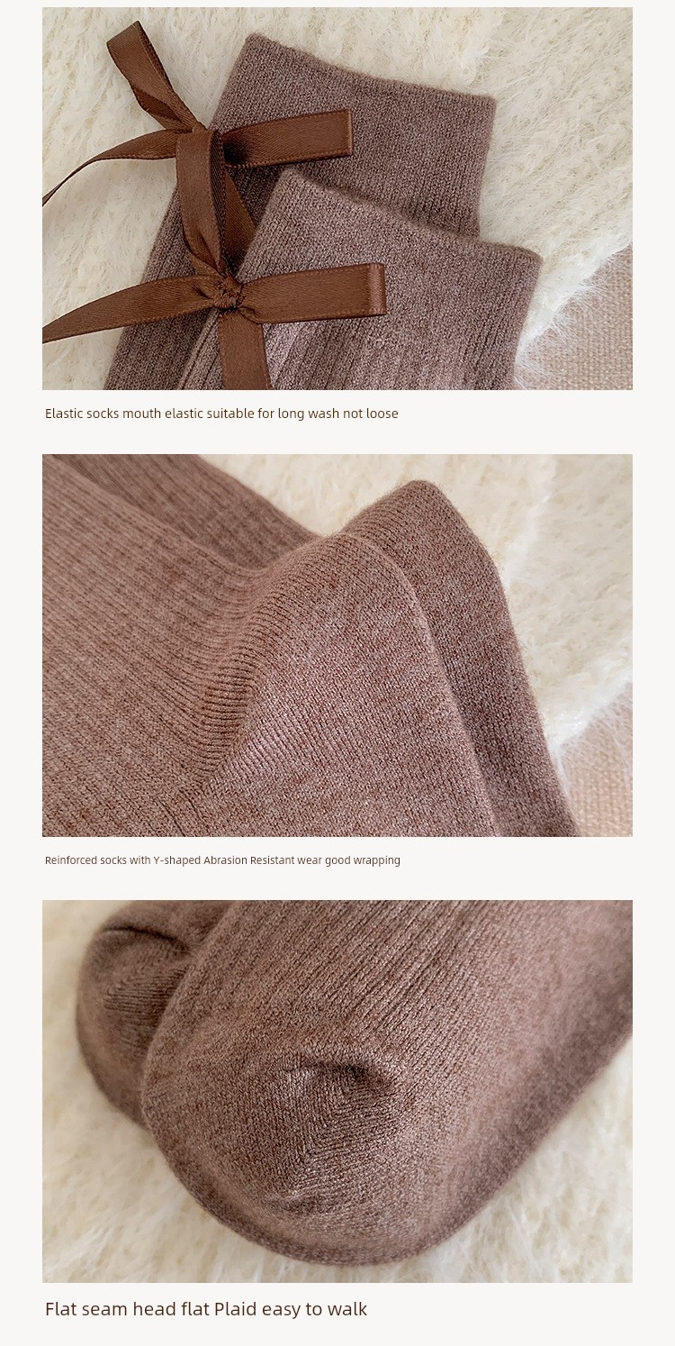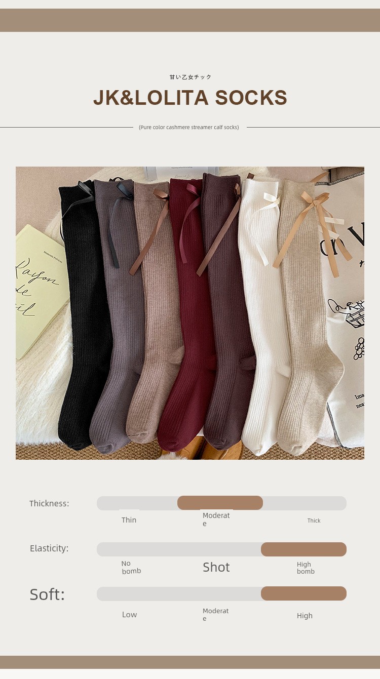 Ribbon Bowknot Calf Socks Female Autumn and Winter Thick Warm Stockings Micro Pressure Slim Looking Maillard Style JK Bunching Socks