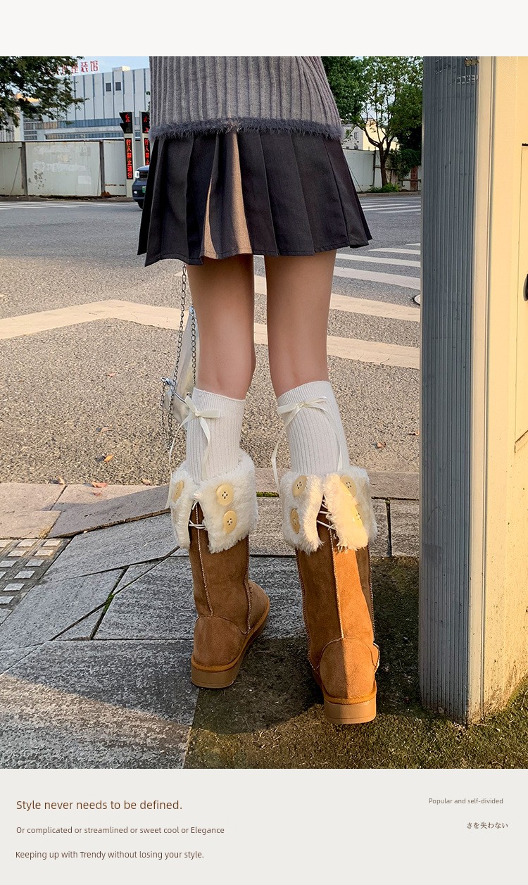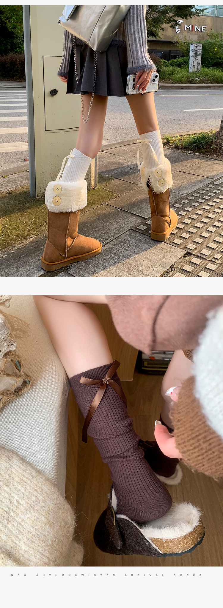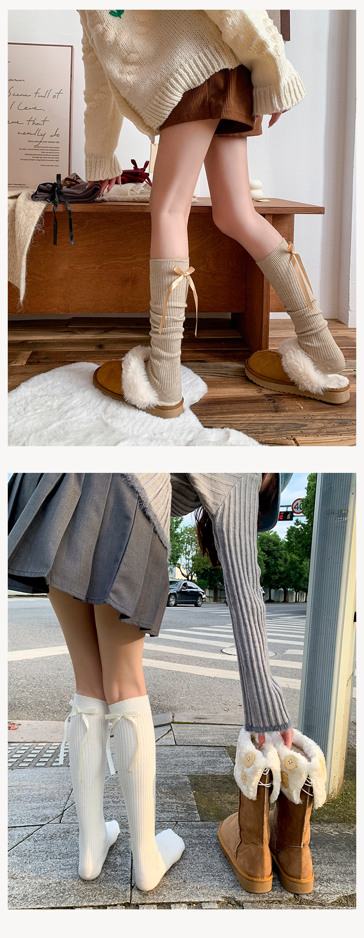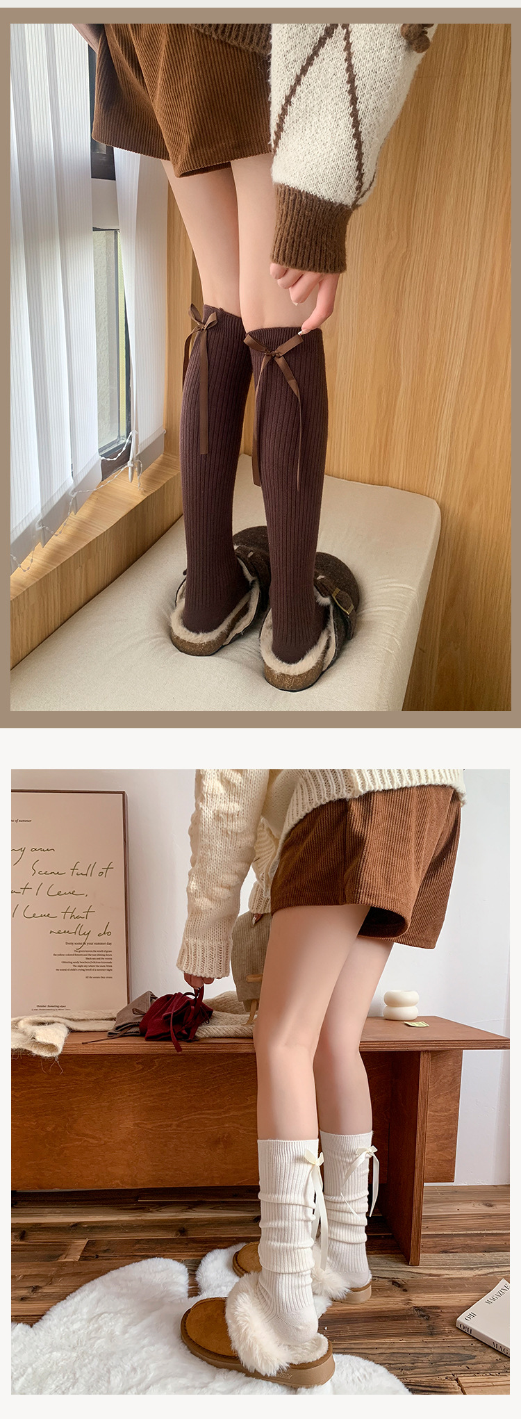 Ribbon Bowknot Calf Socks Female Autumn and Winter Thick Warm Stockings Micro Pressure Slim Looking Maillard Style JK Bunching Socks