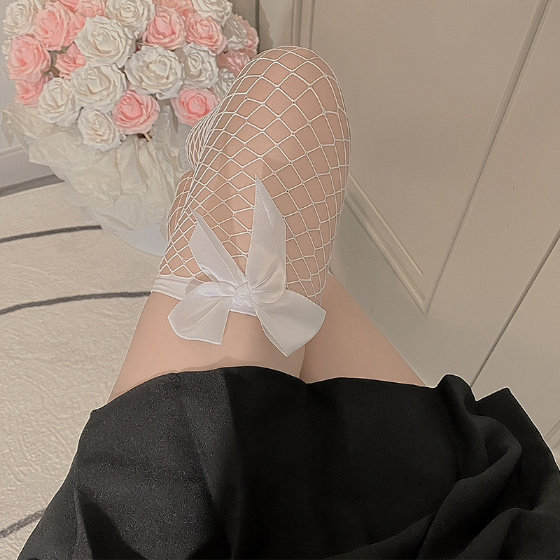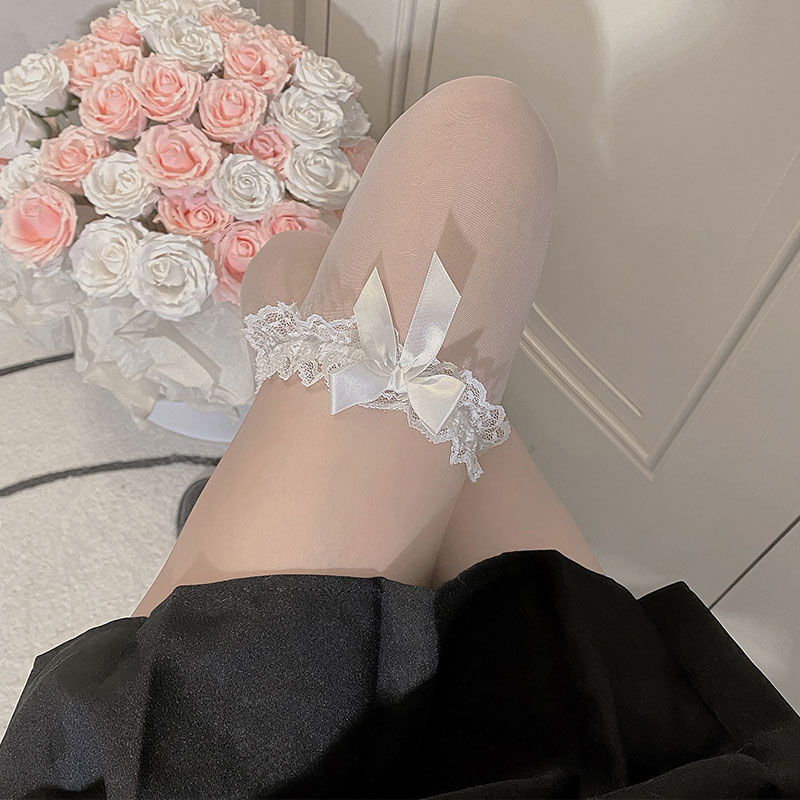 Stockings Women's Sexy Black Silk Thin White Silk Long Legs Knee Socks Hold-Ups Half Pure Desire Lace Fishnet Stockings