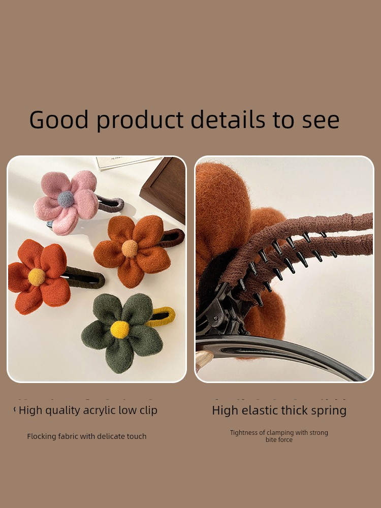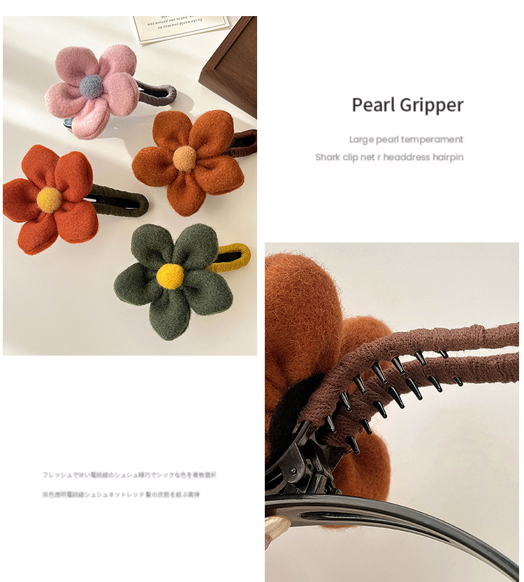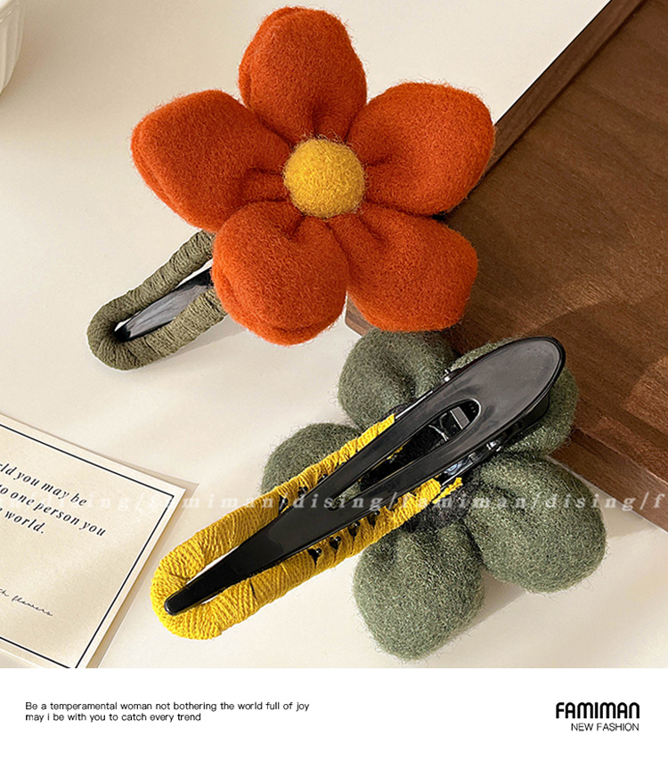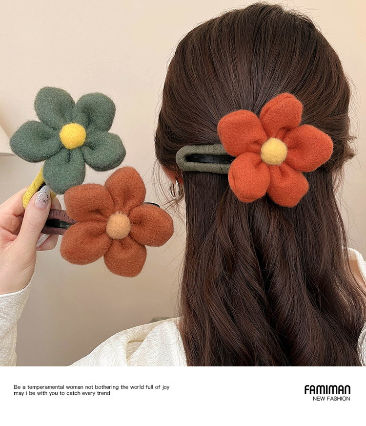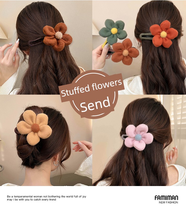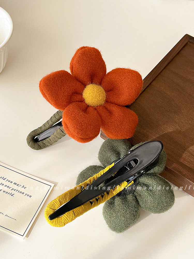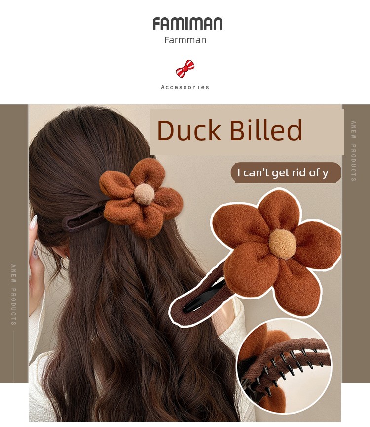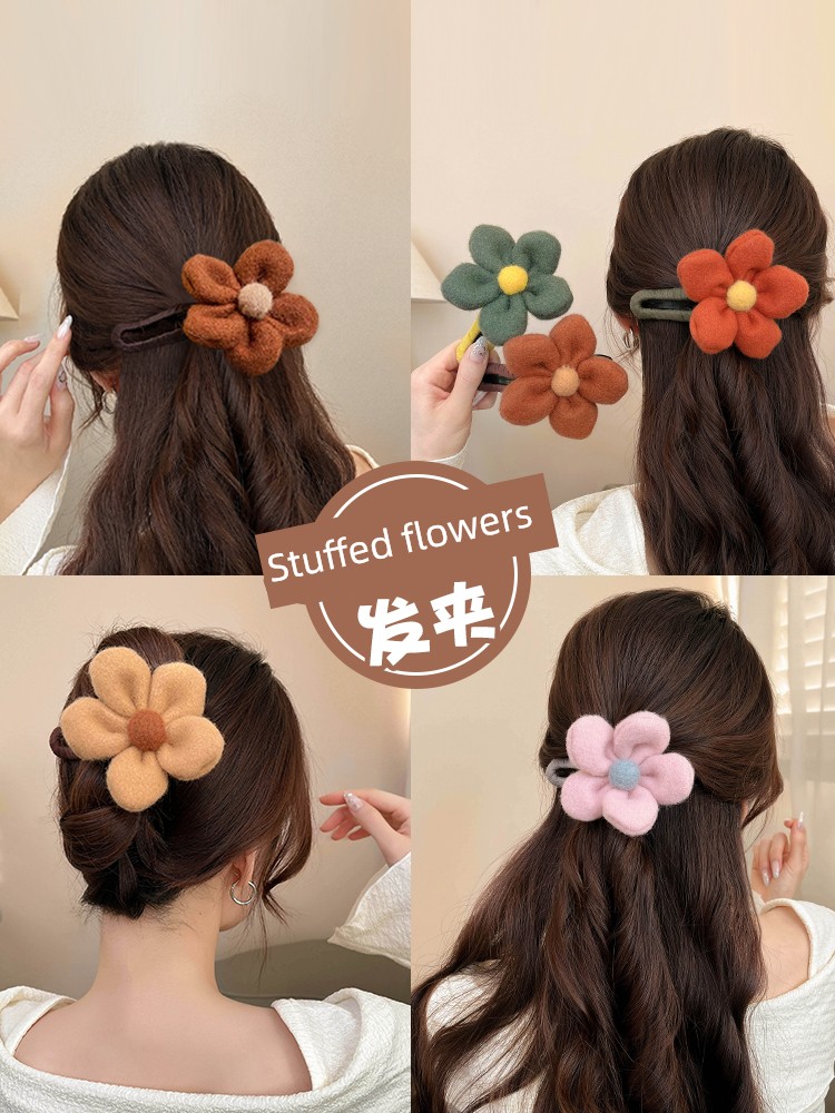 Stuffed Flower Duckbilled Hair Clip Female Back Head Updo Hair Claw Large Size Loose Clip Single Line Clip Hair Clip Headdress