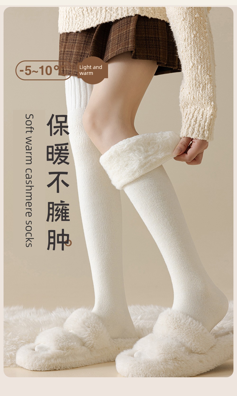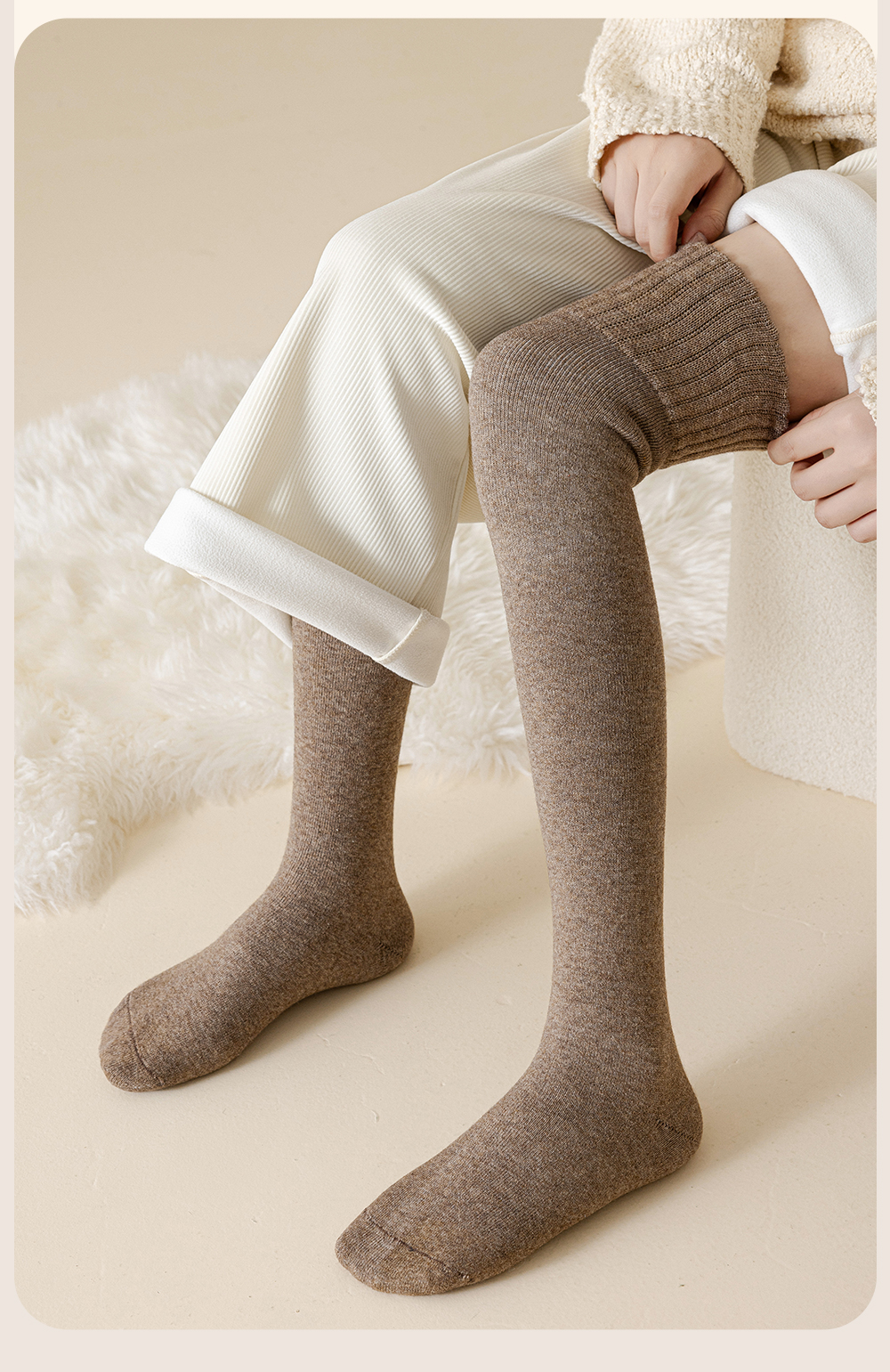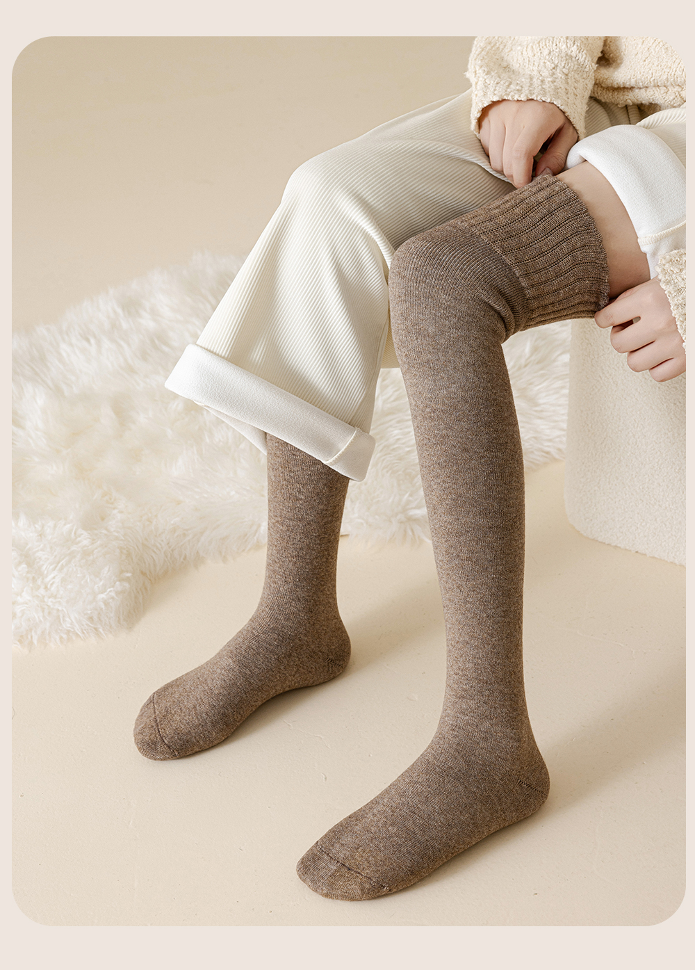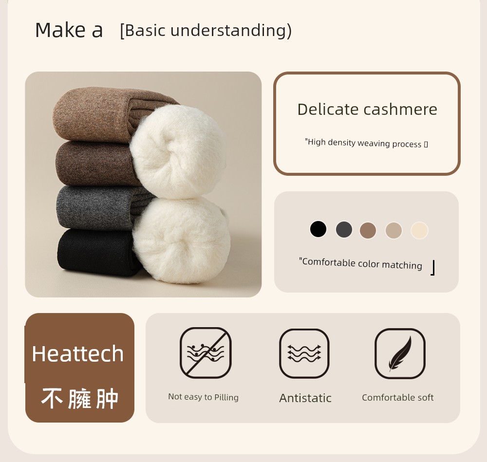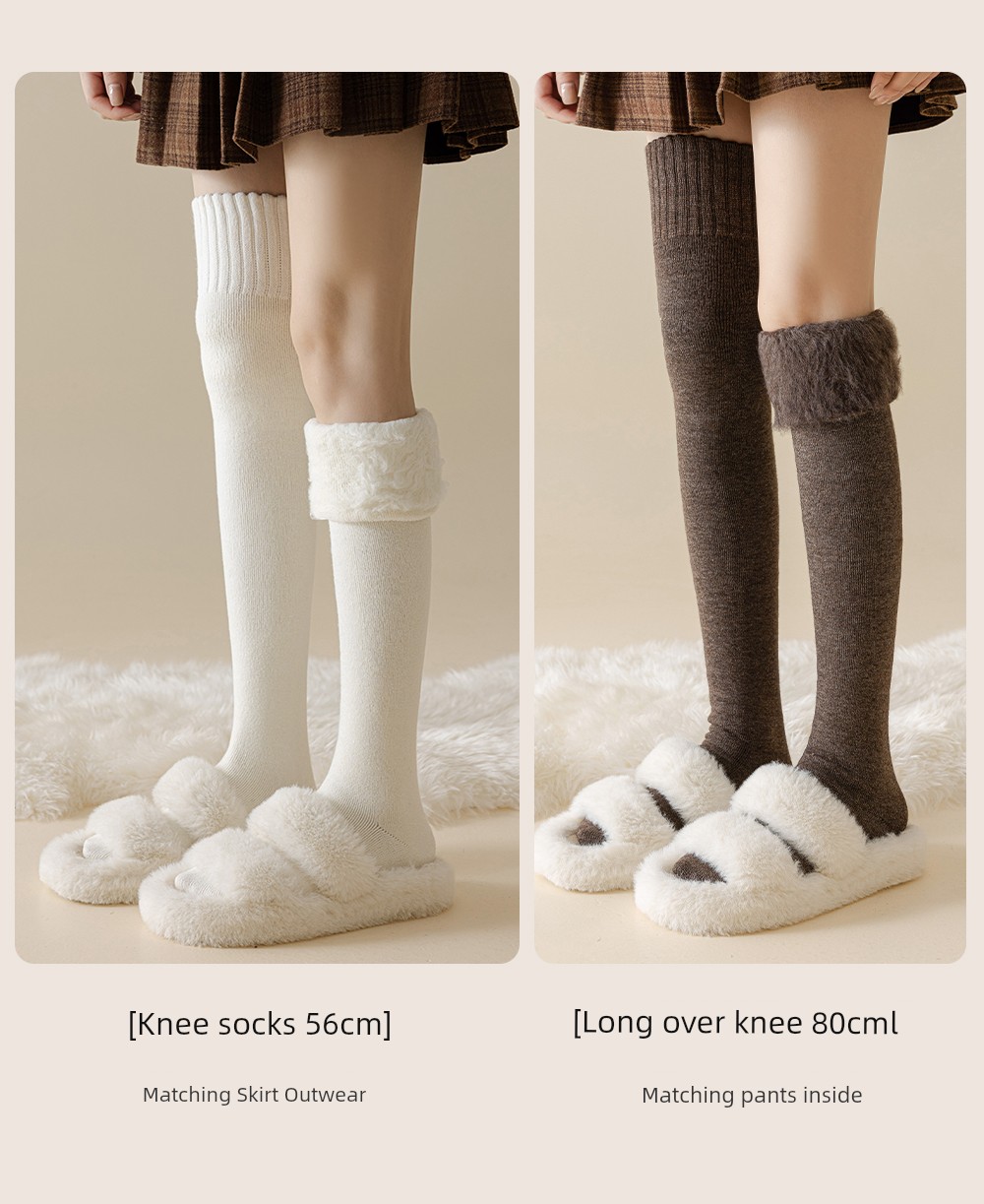 Wool Knee Socks Women's Autumn and Winter Cashmere Stockings Fleece-lined Thickened Middle-Aged and Elderly Heattech Plus Size Pregnant Women's Super Stockings