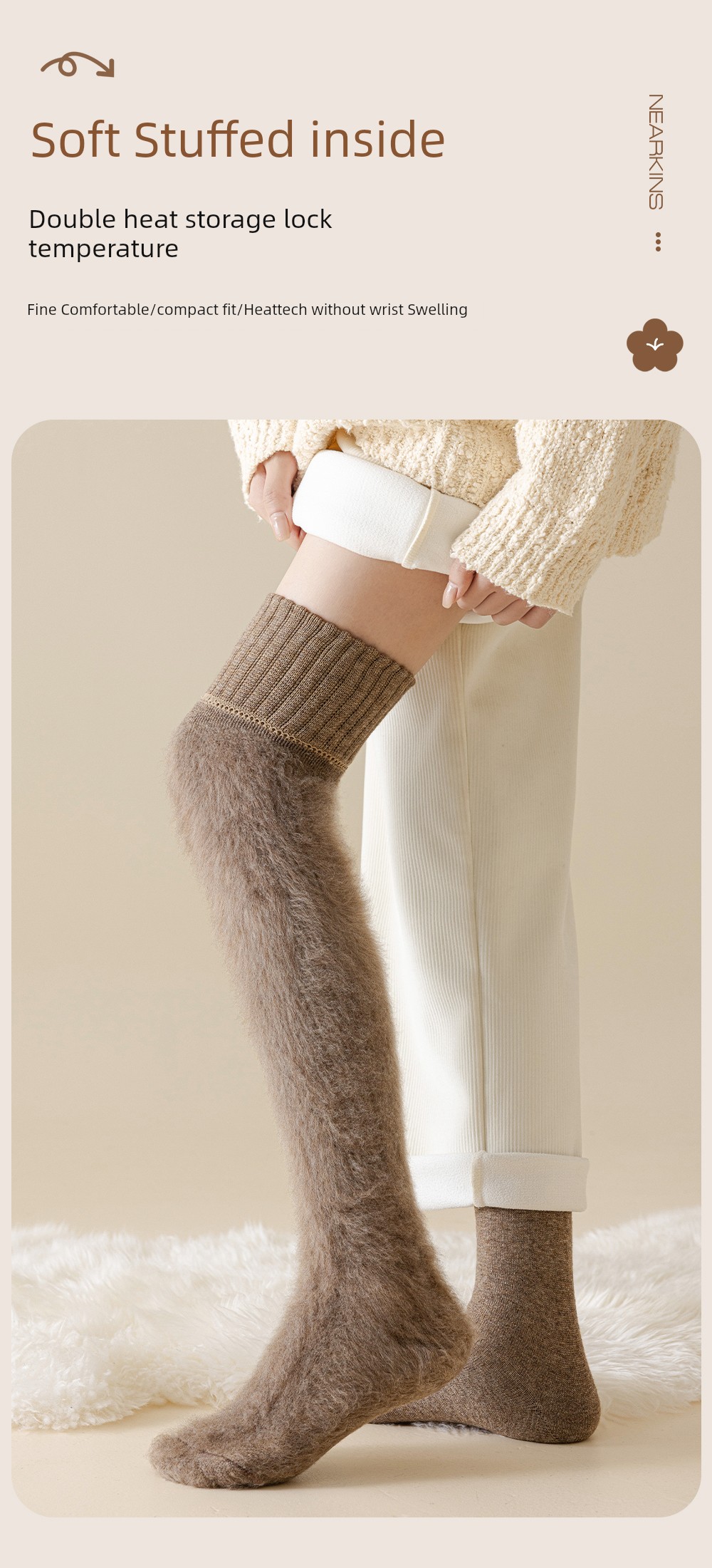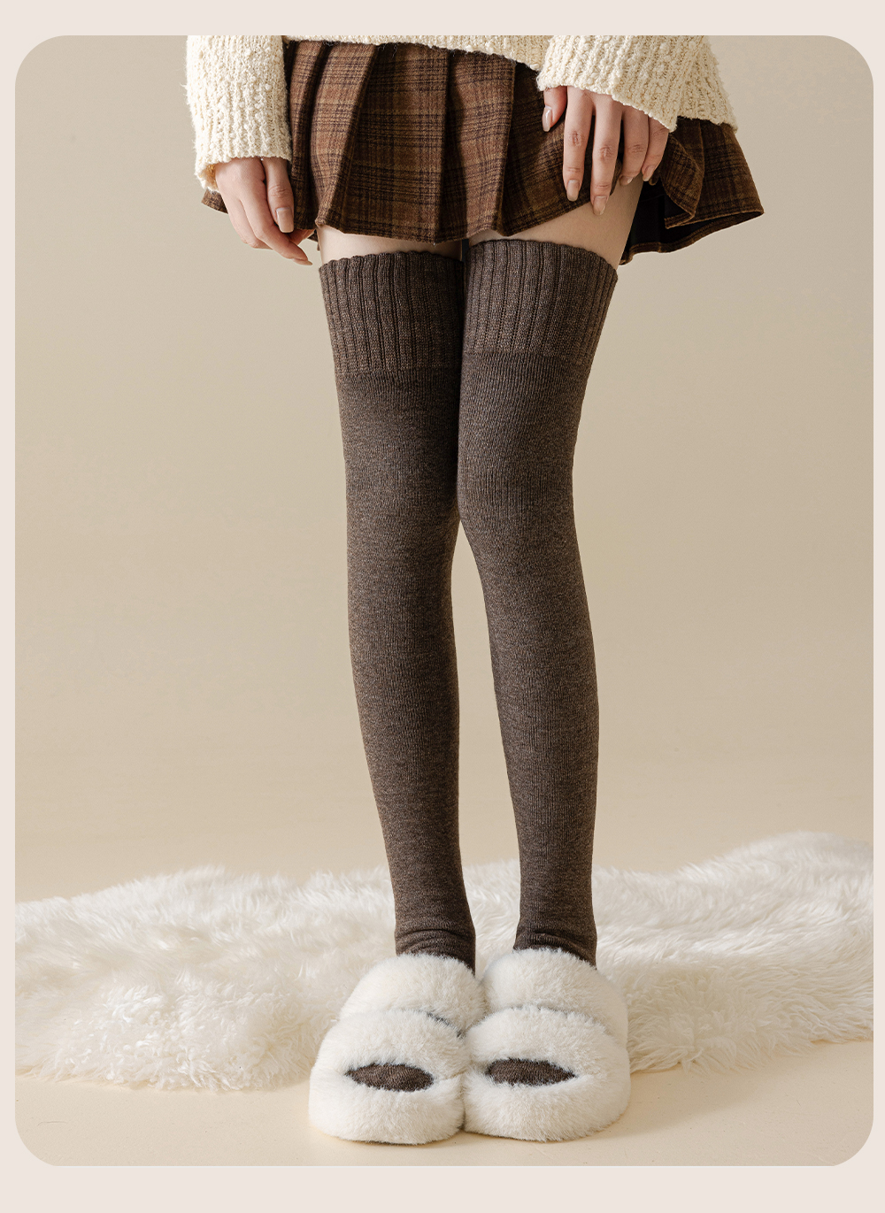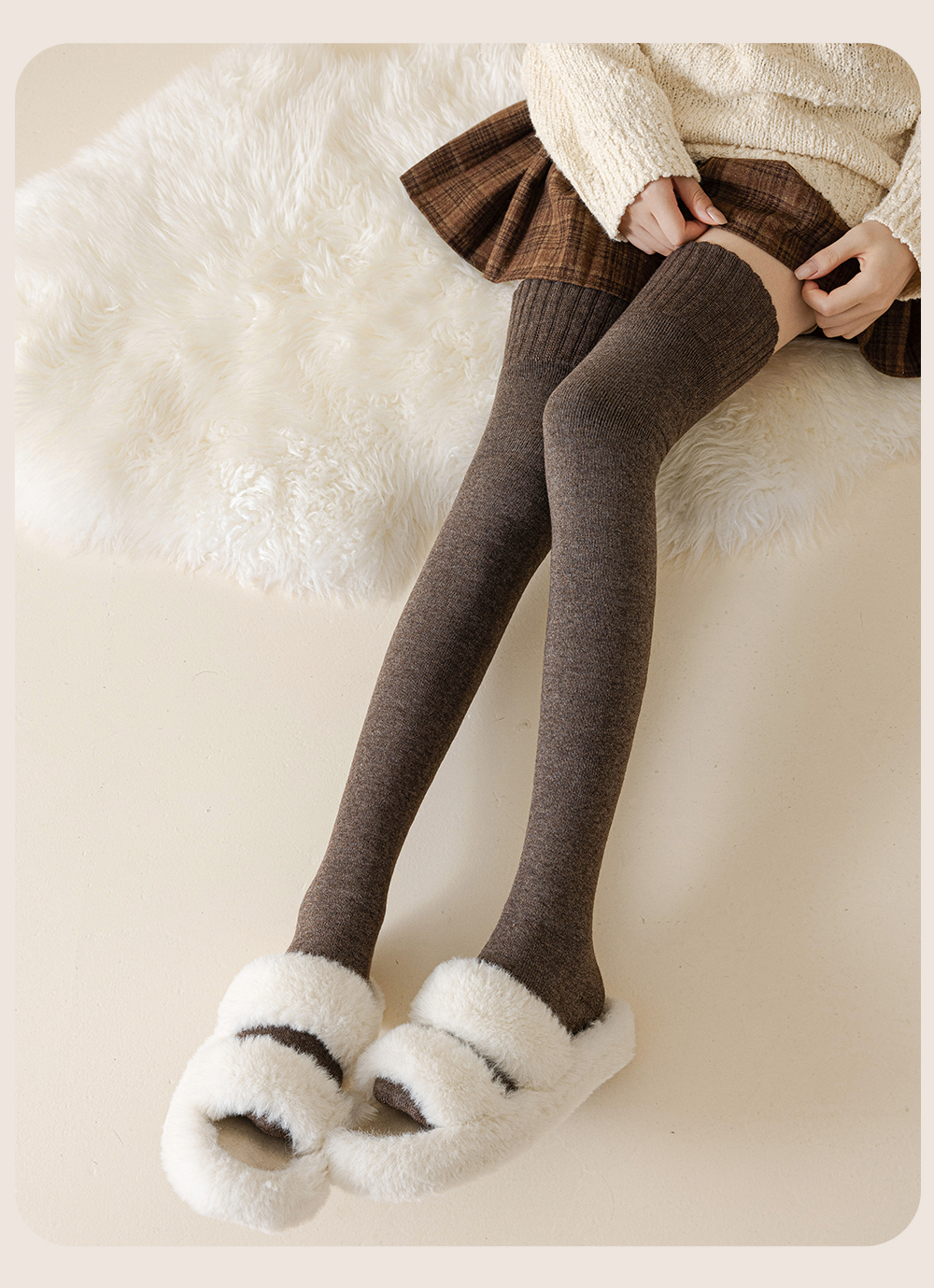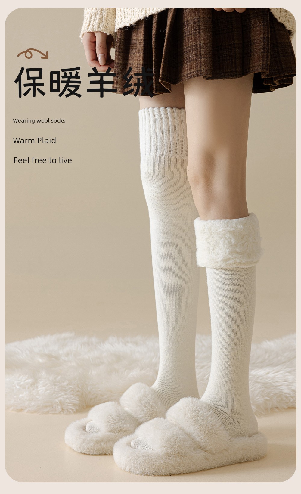 Wool Knee Socks Women's Autumn and Winter Cashmere Stockings Fleece-lined Thickened Middle-Aged and Elderly Heattech Plus Size Pregnant Women's Super Stockings