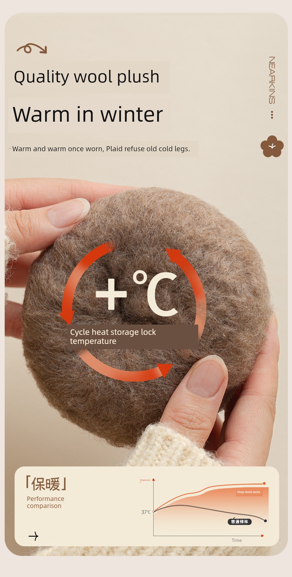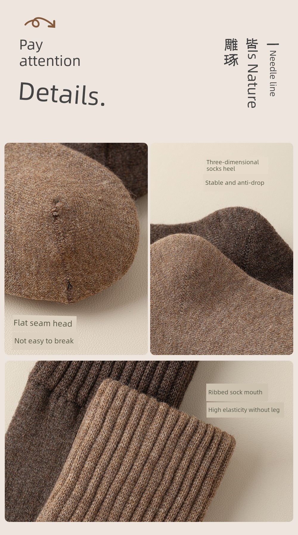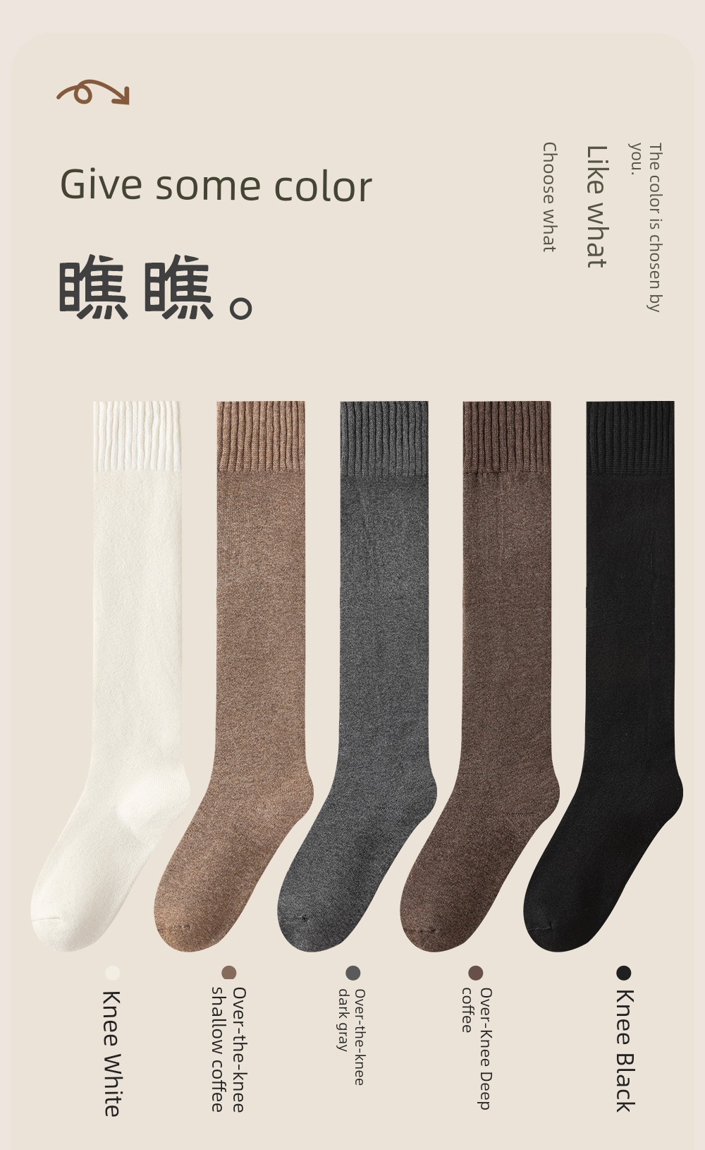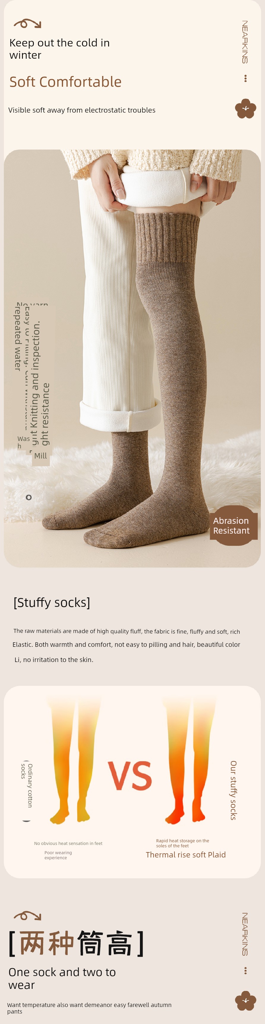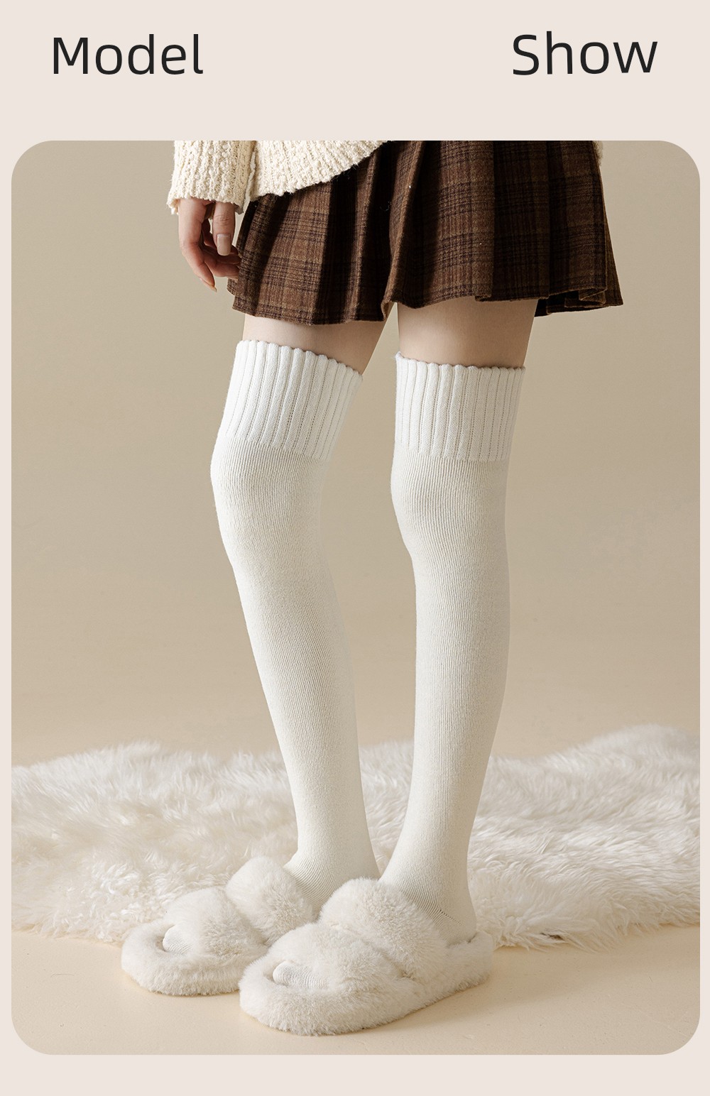 Wool Knee Socks Women's Autumn and Winter Cashmere Stockings Fleece-lined Thickened Middle-Aged and Elderly Heattech Plus Size Pregnant Women's Super Stockings