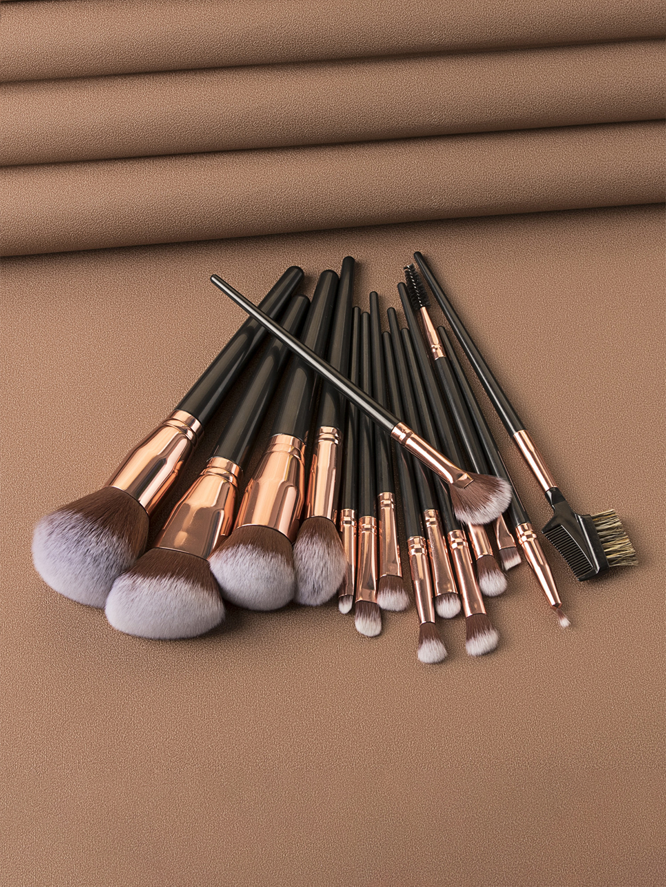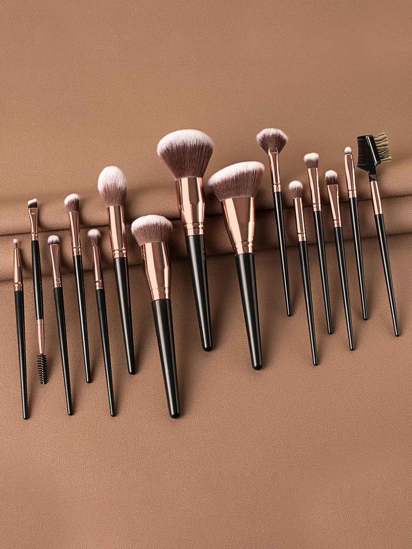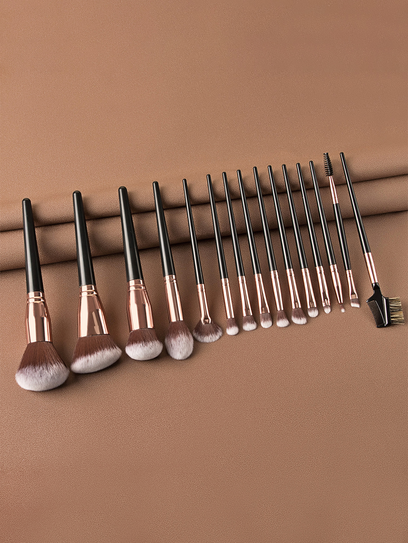 15支黑色大号化妆刷套装+化妆刷包包含散粉刷 腮红刷 多功能刷 眼线刷 眉梳刷 扇形余粉刷 散粉刷 眼影刷 遮瑕刷 唇刷 眉刷 修容刷等 也可用美甲清洁刷