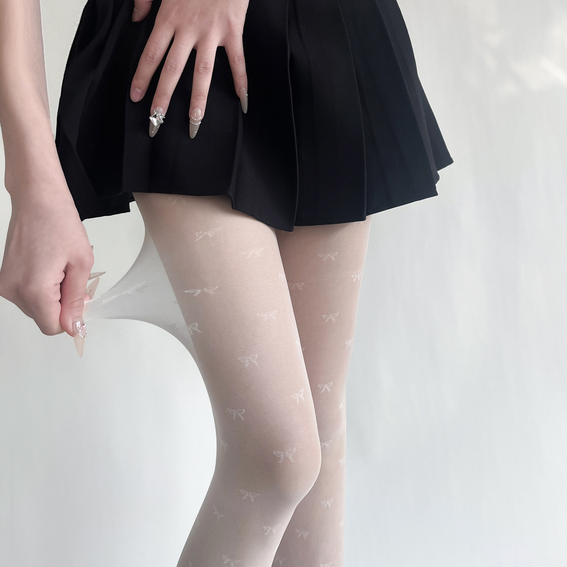 Черные чулки с бантами, женские, сексуальные, черные, шелковые, чистое желание, чулки JK, 0D, анти-разрывные, белые, мерсеризованные, колготки для ног