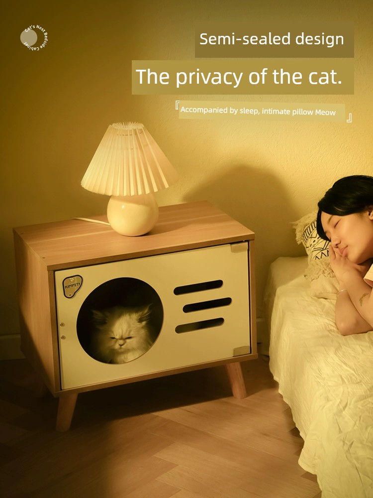 Прикроватная тумбочка для кошки, гнездо для кошки, подходит для всесезонного использования, для совместного проживания с кошками, полузакрытый домик для кошек, тепловой питомник для кошек