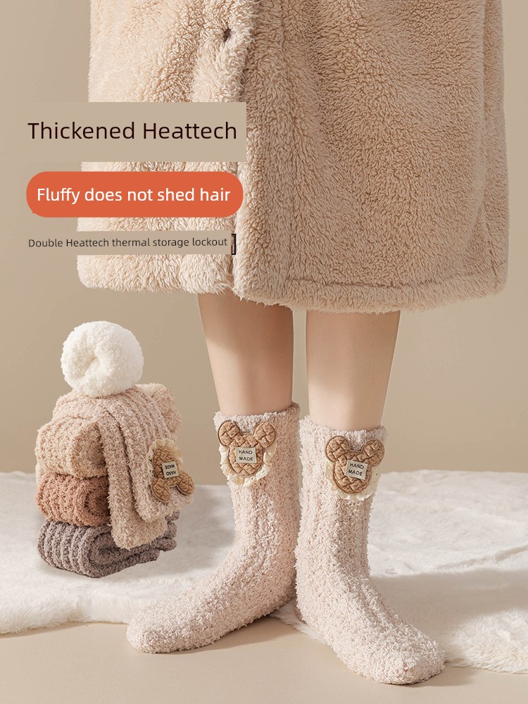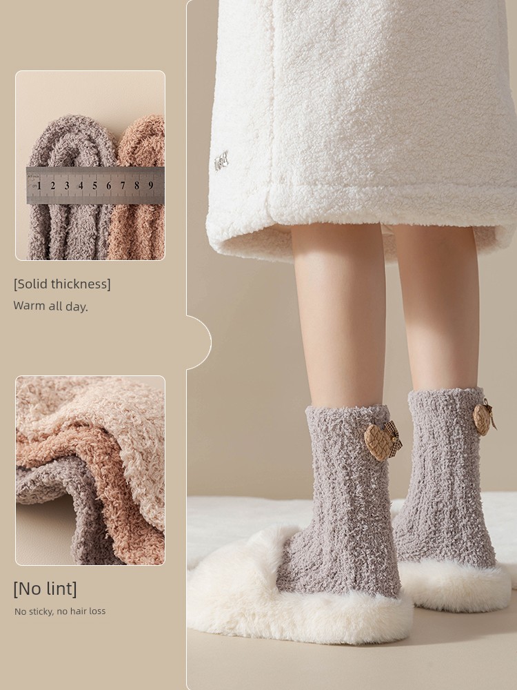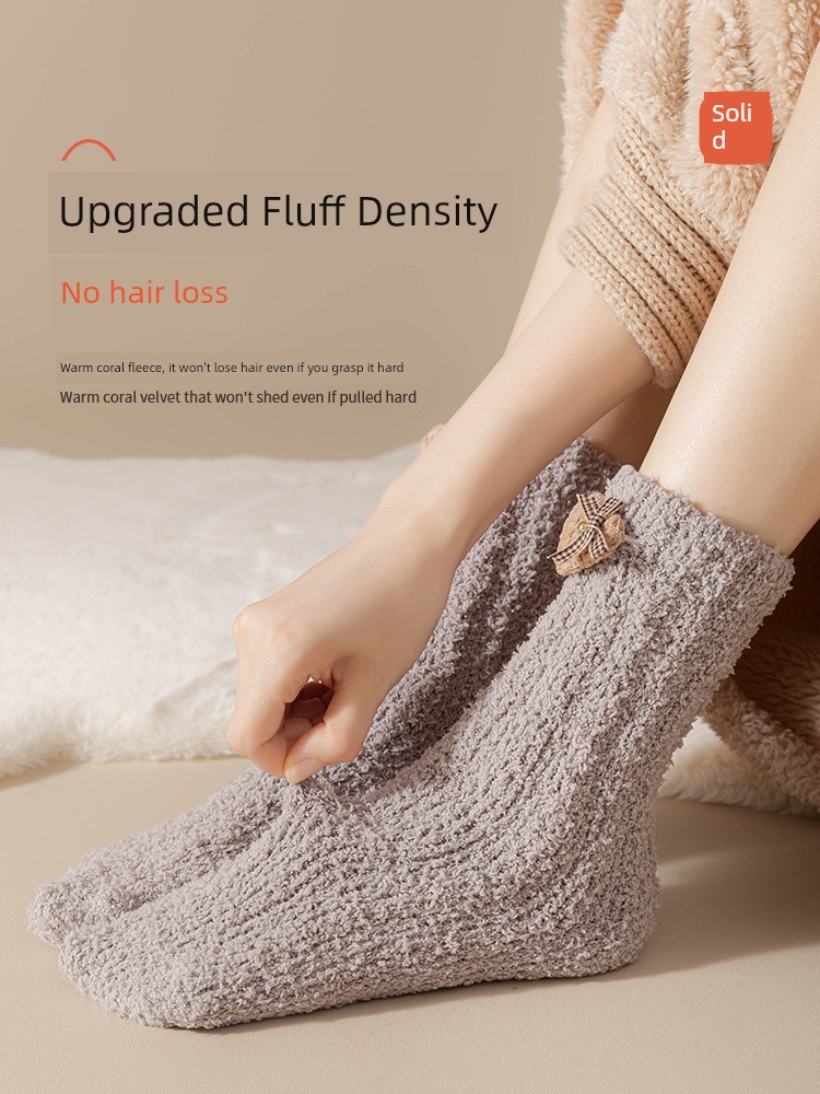 Женские носки из кораллового флиса, осенние и зимние, средней длины, мультяшные, милые, для сна, домашние носки, утолщенные, тепловые, для беременных