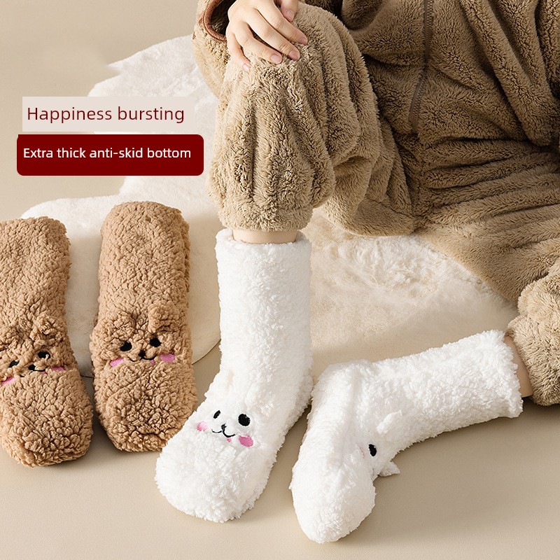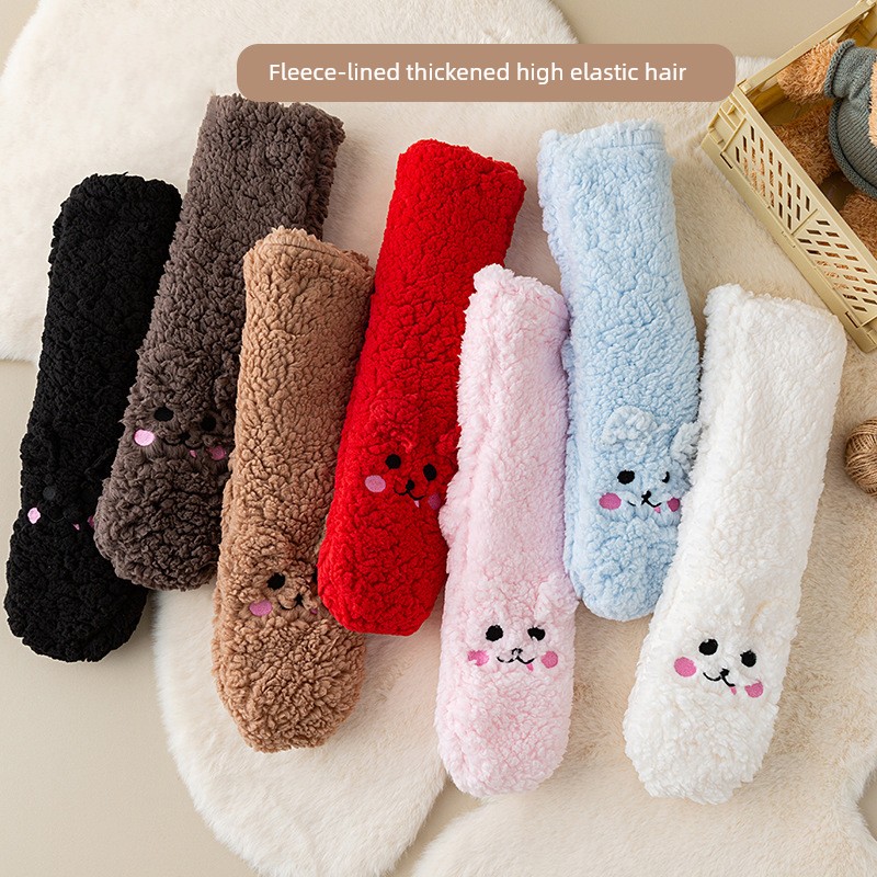Женские носки из кораллового флиса, носки для дома, для сна, фантастический прибор для согревания ног, осень-зима, утолщенные милые носки-трубы с подкладкой из флиса с мишкой