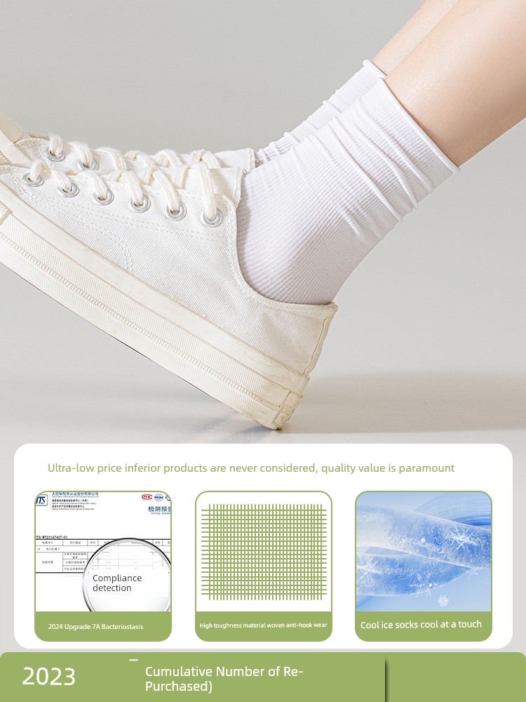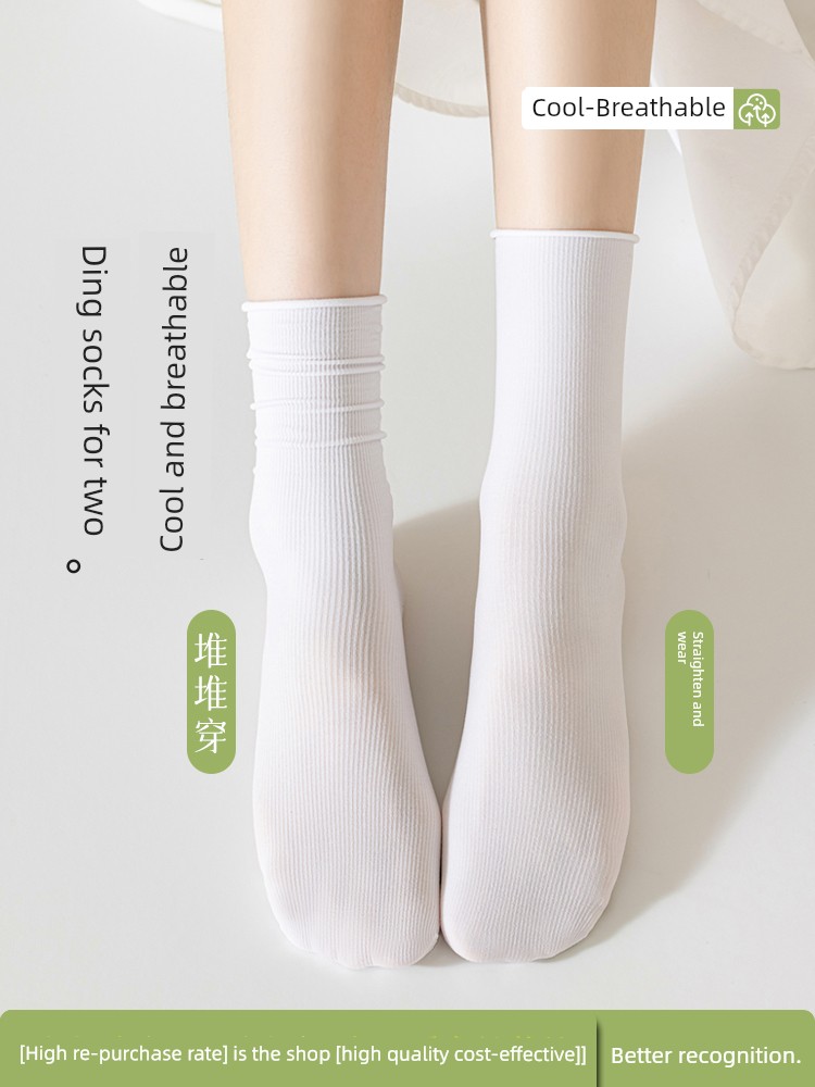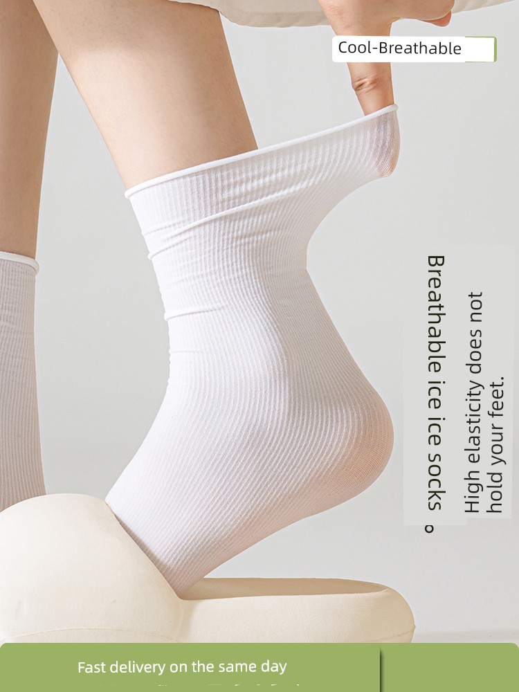 Ледяные носки, женские летние, тонкие белые, объемные носки, балетный стиль, летние дышащие носки-трубы из ледяного шелка с маленькими кожаными туфлями