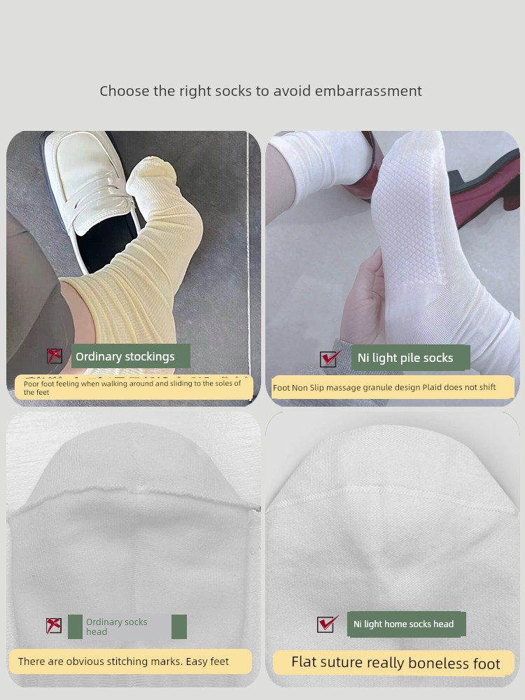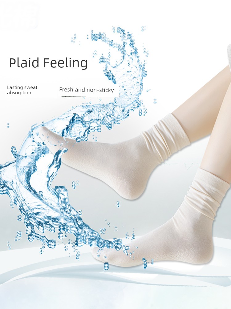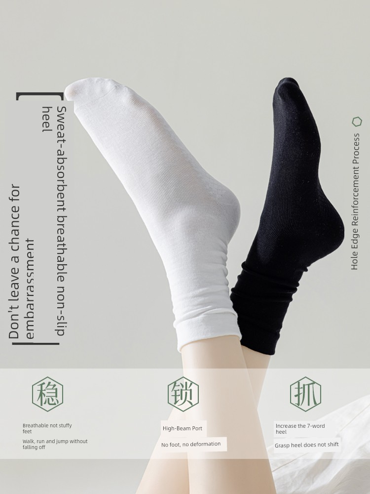 Белые сборные носки Женские ледяные носки Летние тонкие носки длиной до середины икры Чистый хлопок Влагоотводящие нескользящие бесшовные носки Весна и осень Длинные носки