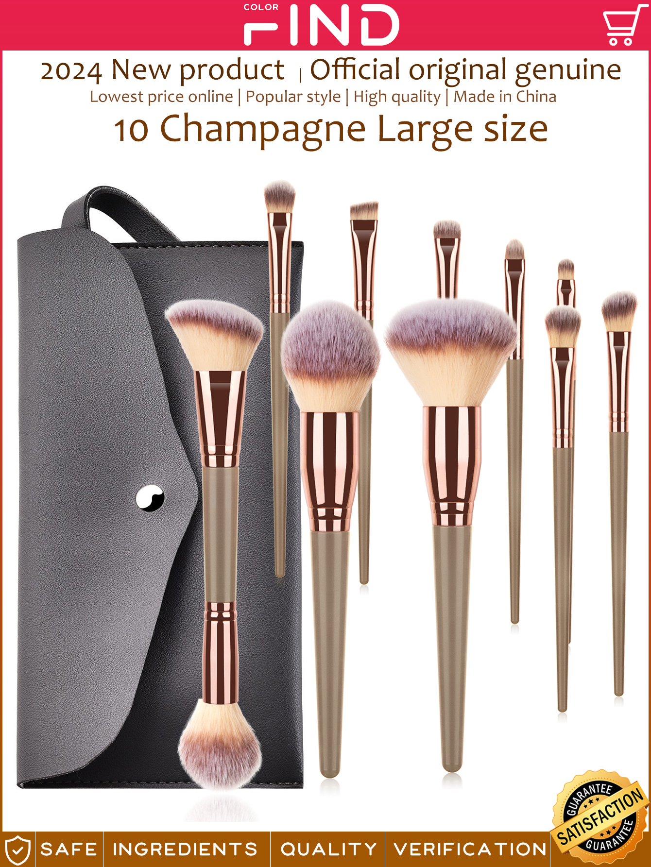 10支棕色大号化妆刷套装+化妆刷包包含双头散粉刷 腮红刷 多功能刷 散粉刷 眼影刷 遮瑕刷 唇刷 眉刷 修容刷等 也可用美甲清洁刷
