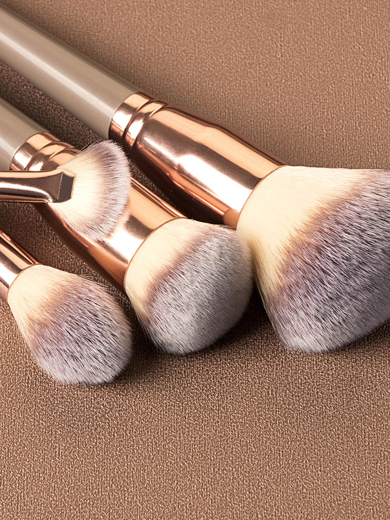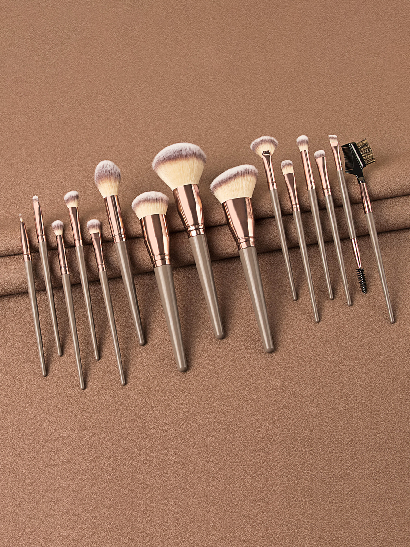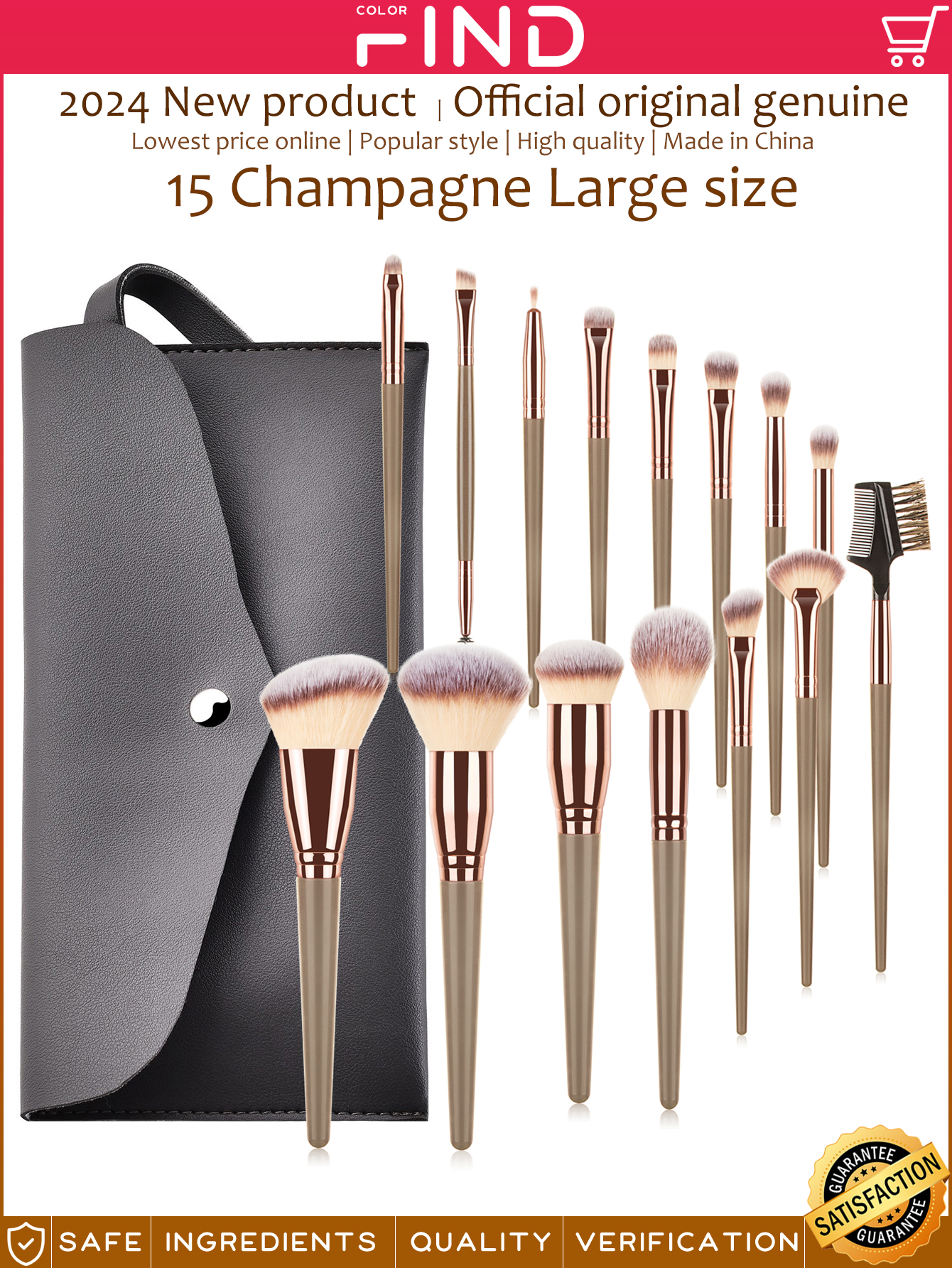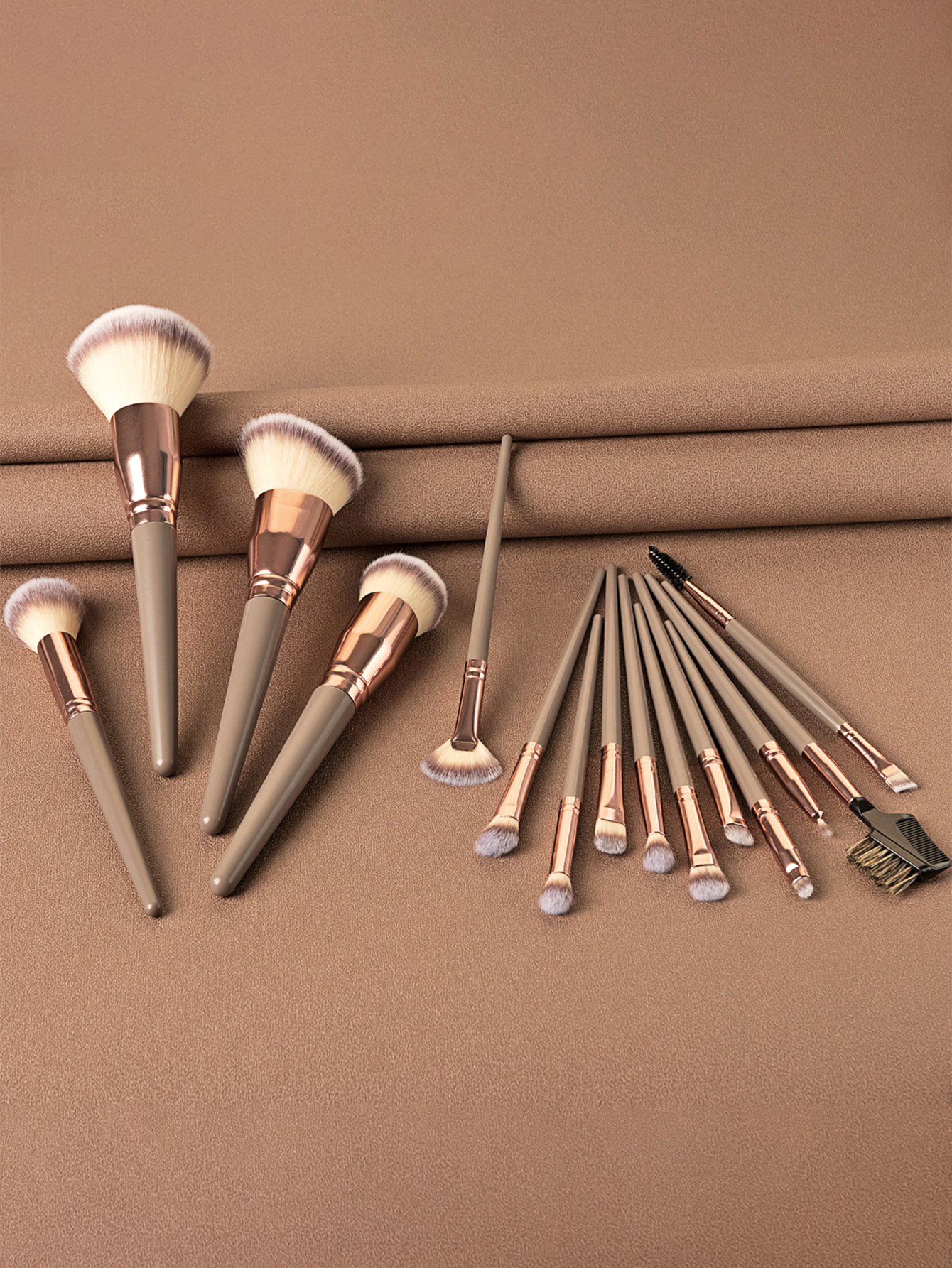 15支棕色大号化妆刷套装+化妆刷包包含散粉刷 腮红刷 多功能刷 眼线刷 眉梳刷 扇形余粉刷 散粉刷 眼影刷 遮瑕刷 唇刷 眉刷 修容刷等