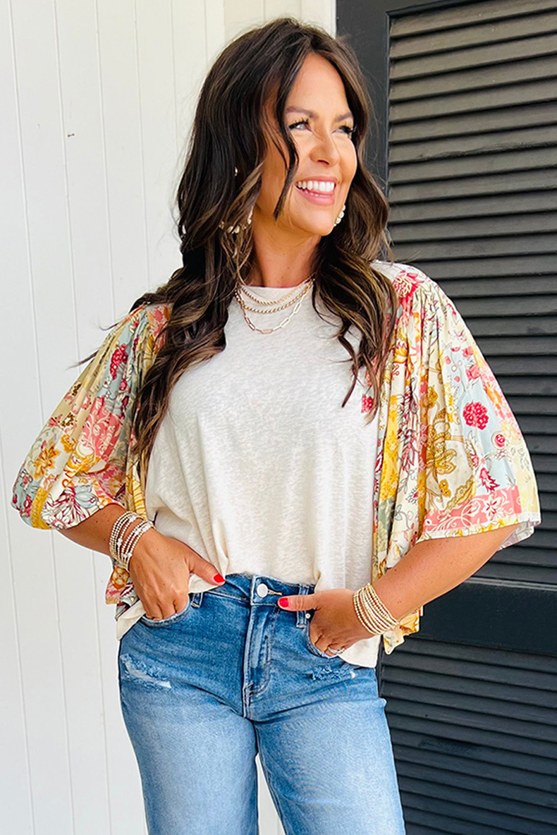 2025年春夏新款圆领套头衫女欧美时尚百搭宽松花卉印花雪纺衫女