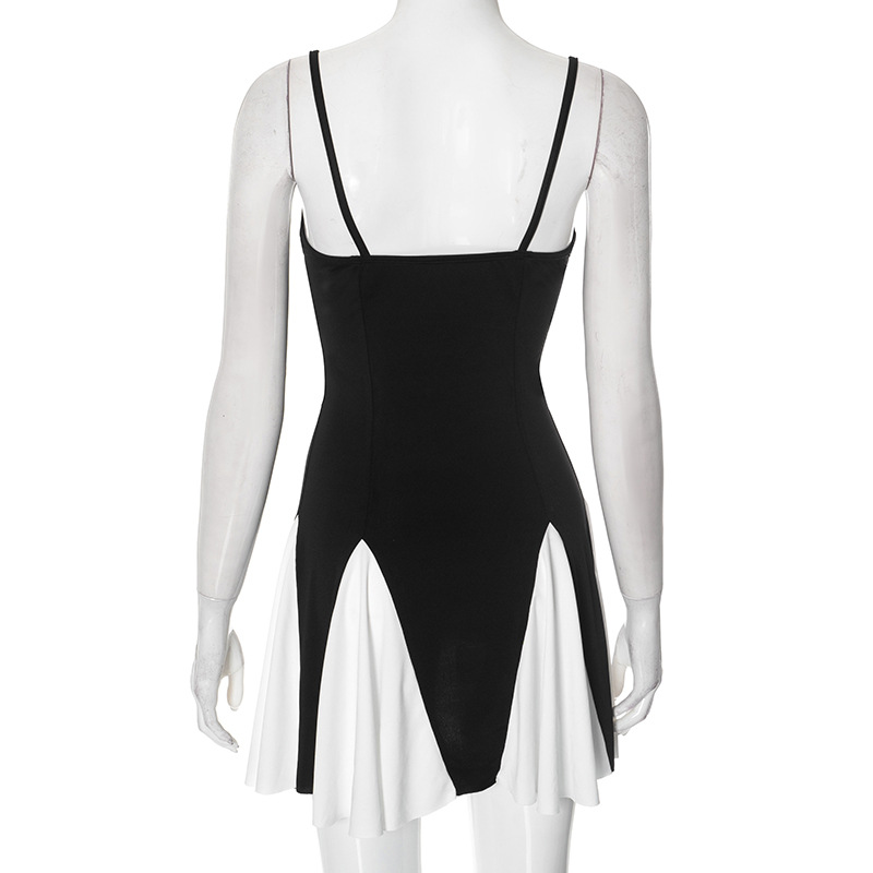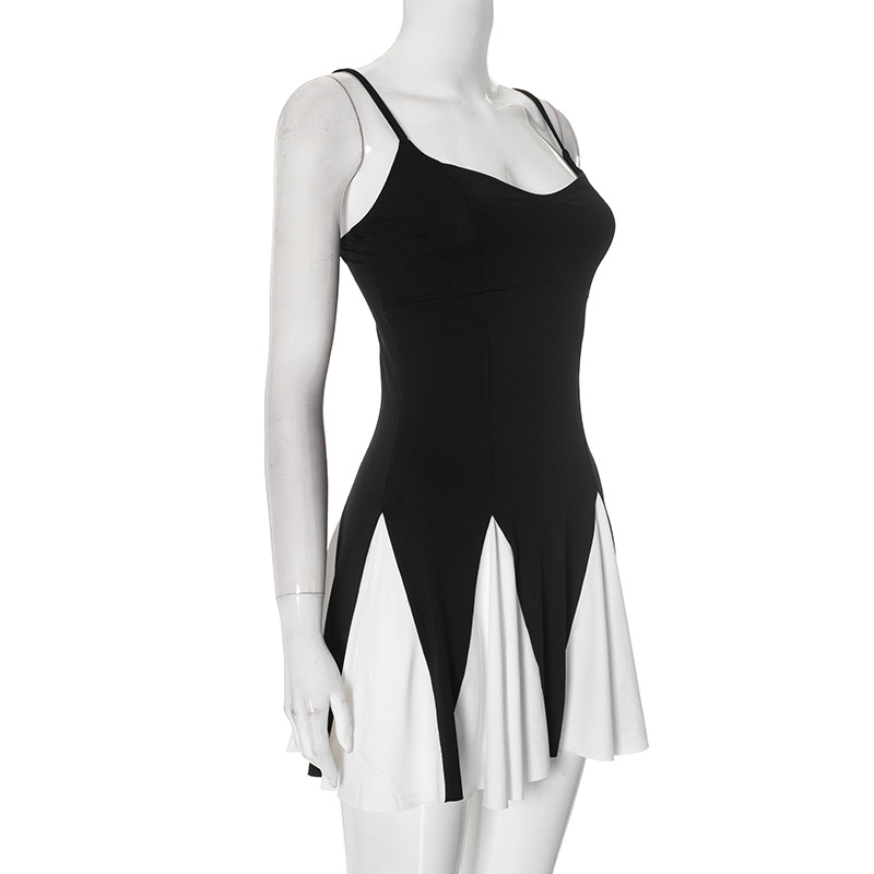 D24DS706欧美女装春夏亚马逊新款撞色无袖单肩性感吊带拼接连衣裙