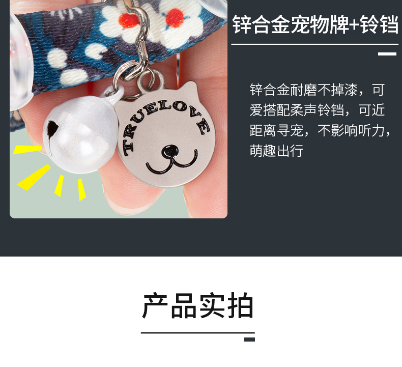 Truelove 猫项圈 铃铛 小猫名字牌 刻字项链 宠物用品 手绳 防丢失装饰品
