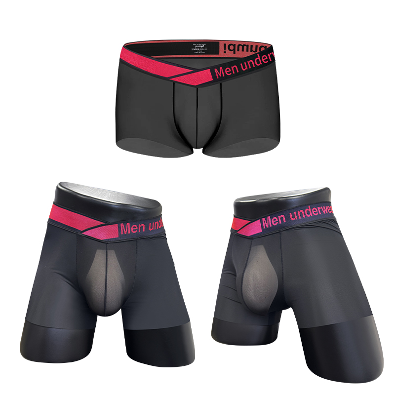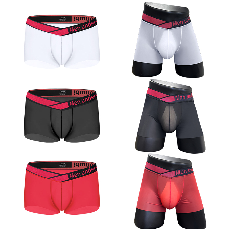 3件 V字低腰 透明 超薄 冰絲 男士內褲 運動 透氣 性感 U字型凸裆 四角內褲