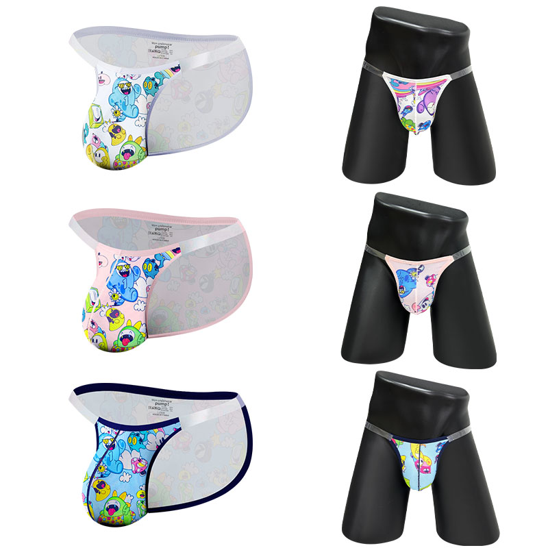 3PCS Cartoon Animation Men Cute Underwear Briefs Mens Fashion Bikini Transparent Belt Hip Raise Panties Sexy Low Waist Man Triangle Underpants