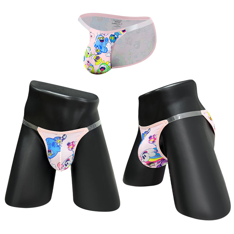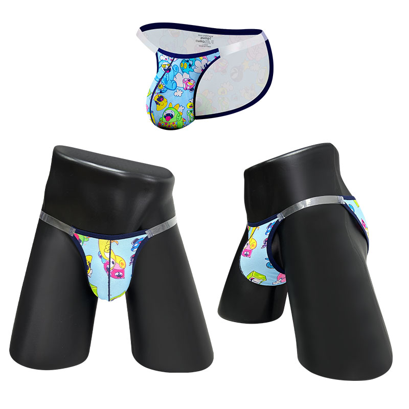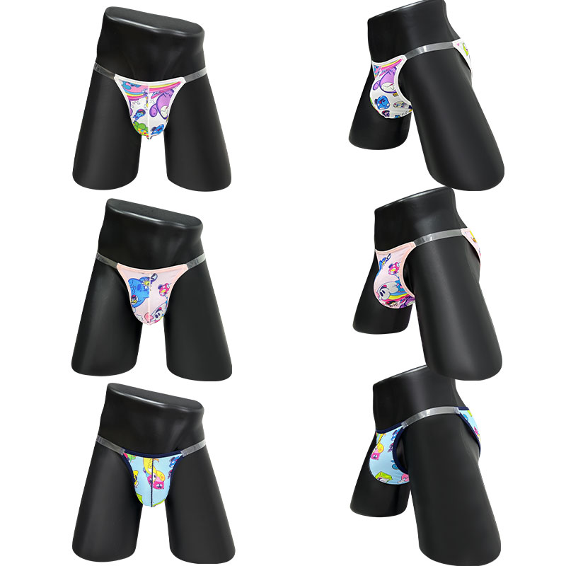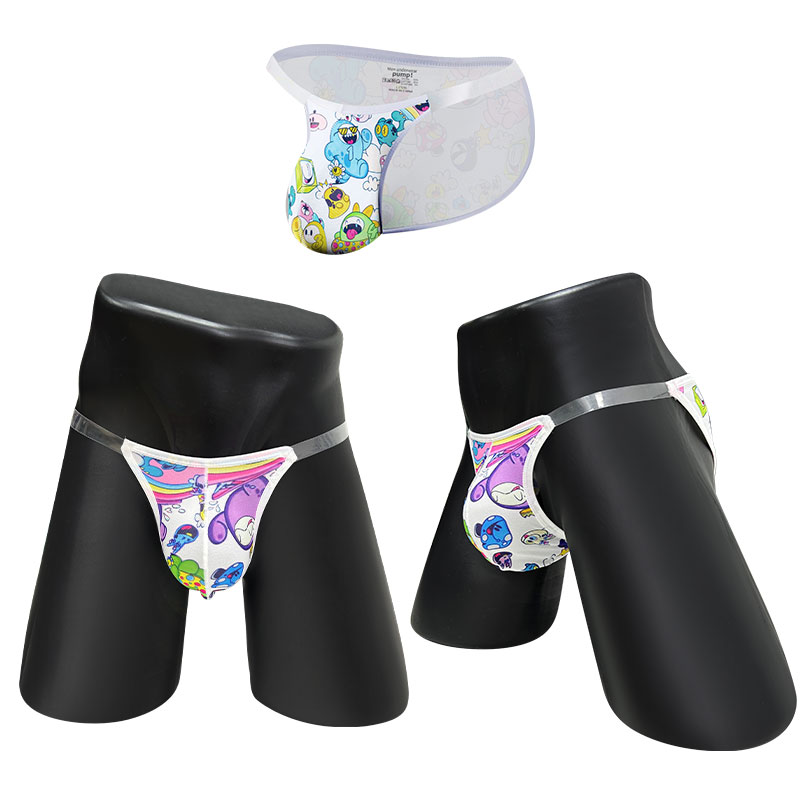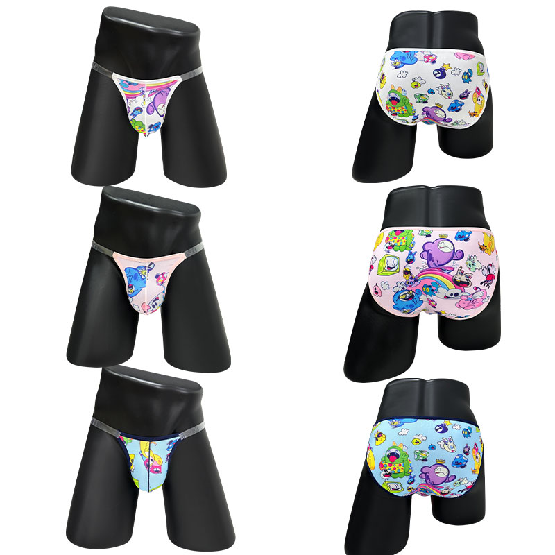 3件裝 卡通動畫風格男士可愛內褲 比基尼款 透明腰帶 提臀 設計 性感 低腰 男士三角內褲