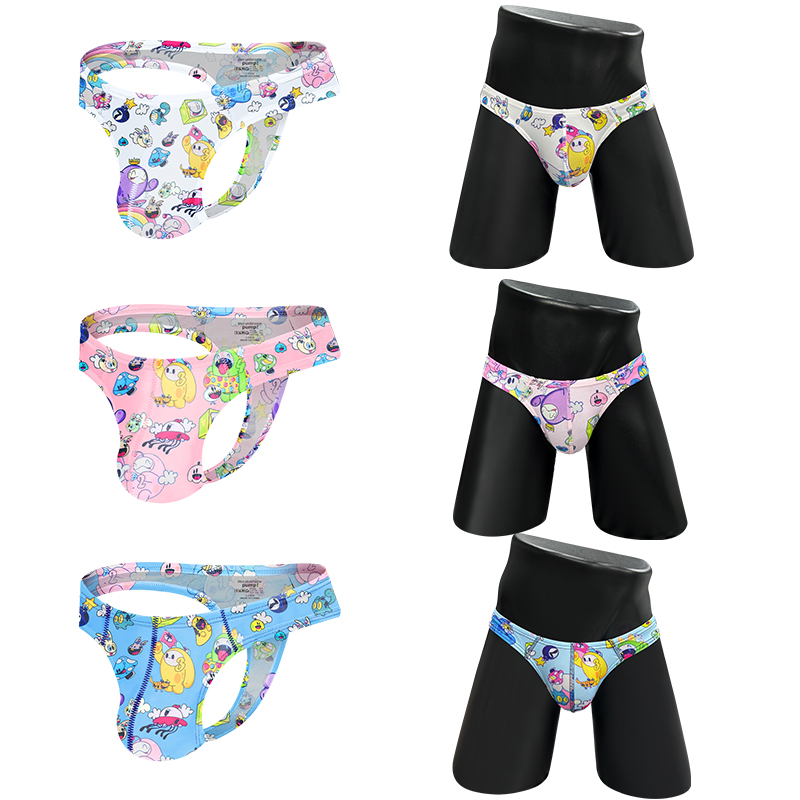 3PCS Cute Cartoon Thongs Mens Sexy Hip Raise Men Soft Underwear Comfortable Bikini Low Waist G-Srting Sissy Erotic Jockstrap T-Back
