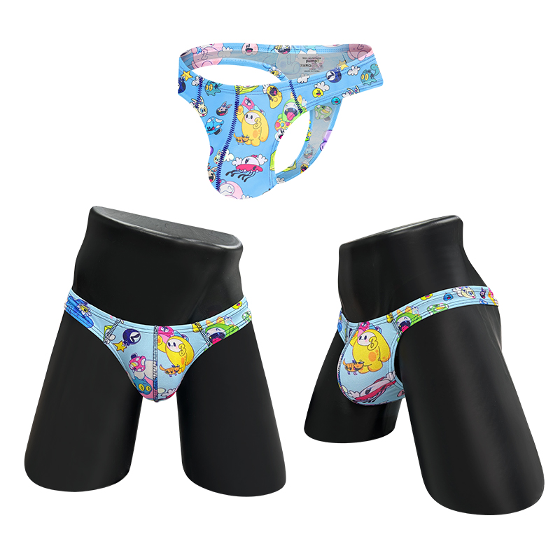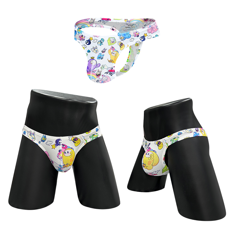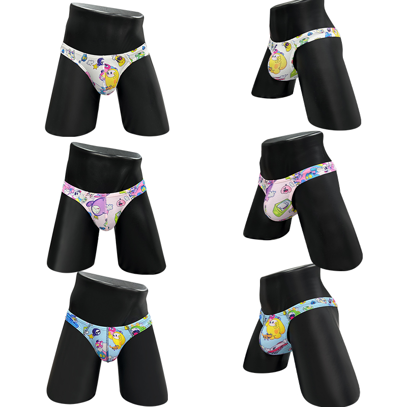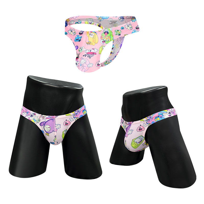3件裝 可愛卡通丁字褲 男士性感提臀內褲 男士柔軟內褲 舒適低腰比基尼款內褲 G字褲 娘娘腔情色護裆 T字背丁字褲