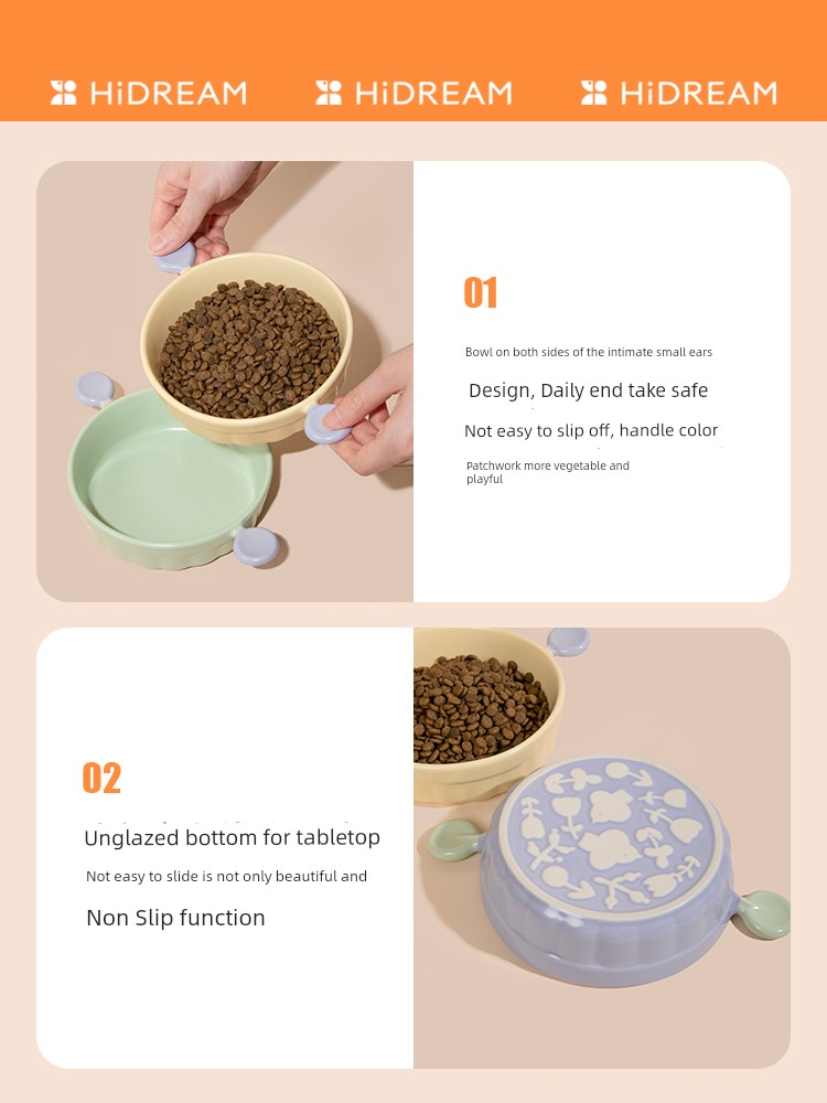 Hidream Dog Basin Dog/Cat Bowl Food Basin Ceramic Bowl Cat Water Bowl Binaural Rice Basin Pet Supplies